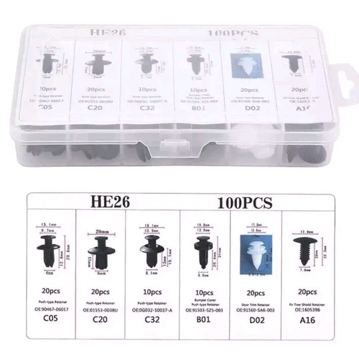 100x Car Body Push Retainer Pin Rivet Bumper Door Trim Panel Fastener Clips Kit
