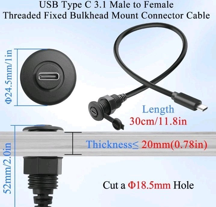 10Gbps USB C 3.1 Threaded Fixed Short Cable Connector USB Type C 3.1 Male to .... Condition is New. Shipped with USPS Ground Advantage.