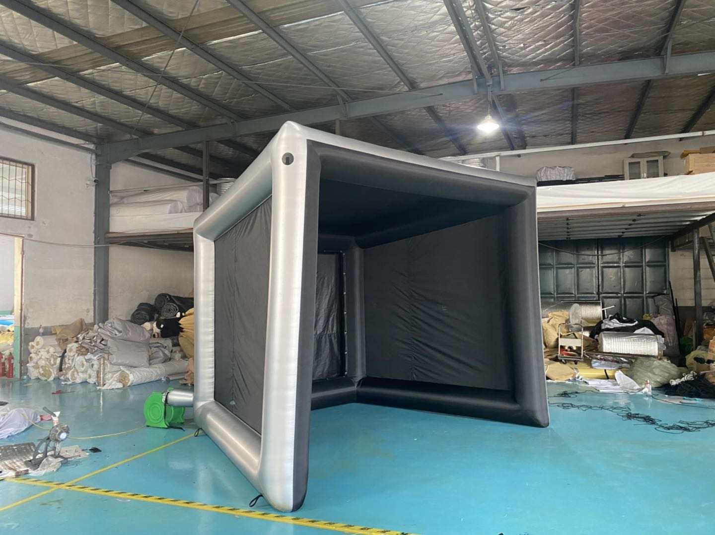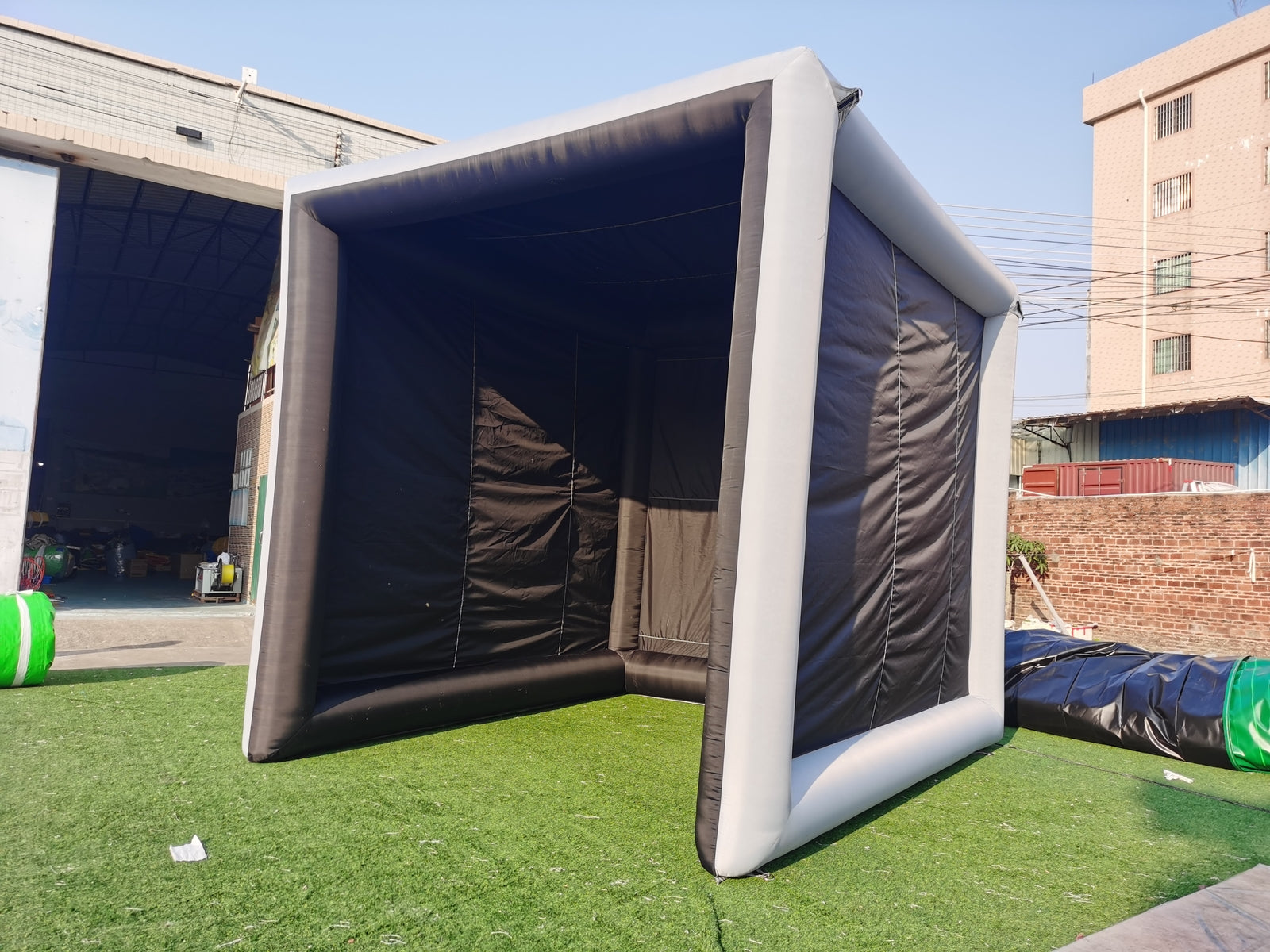 BLOWER NEEDS TO STAY ON FOR TENT TO STAY INFLATED. INCLUDES: TENT & BLOWER. MATERIAL: OXFORD CLOTH. we will try our best to avoid any quality problem.