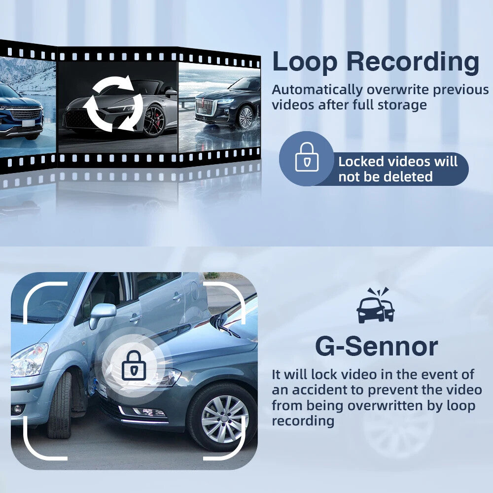 Continuous recording during parking for better monitoring and protection of the car.If you need a voltage reducing cable, please contact us for additional purchase.