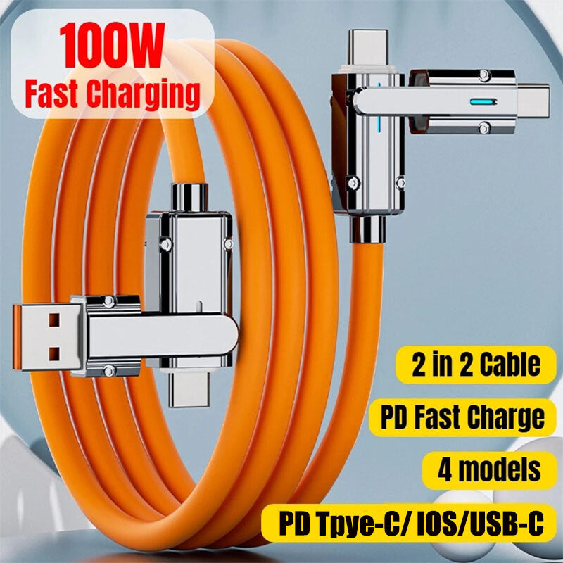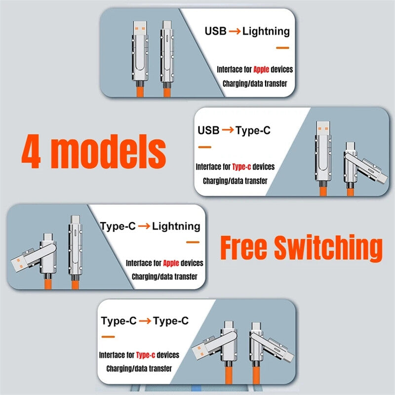 120W 4-In-1 Super Fast Charging Cable Charger Data Cord For iPhone Samsung iPad