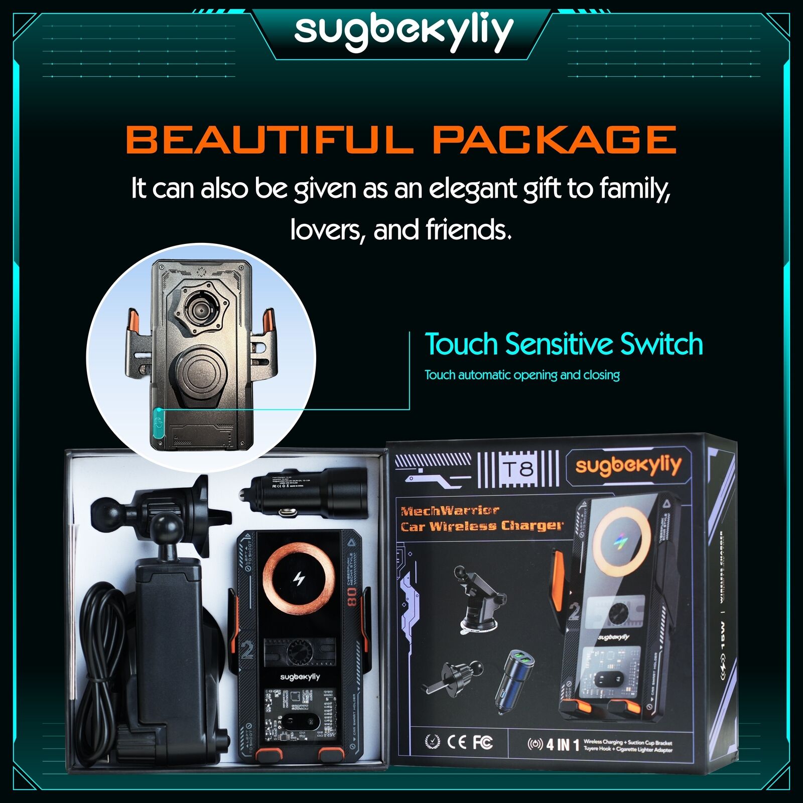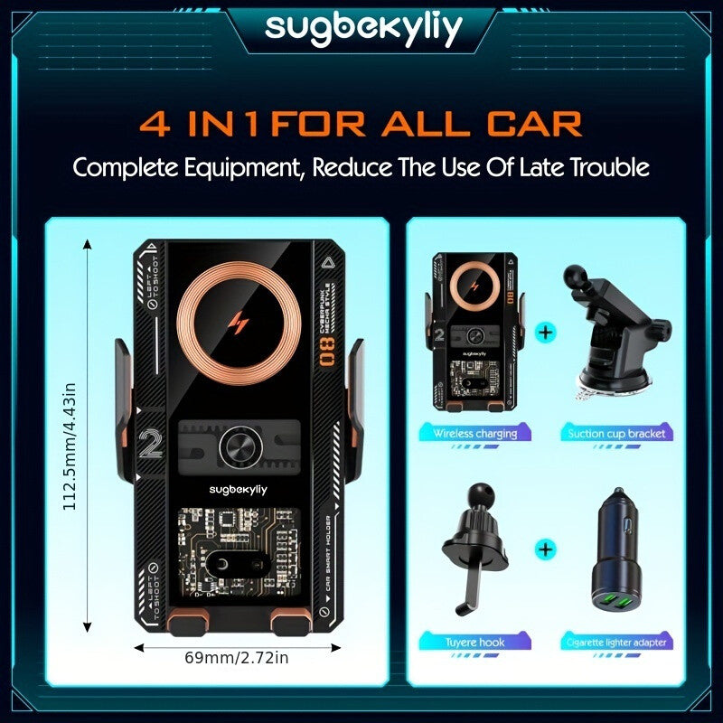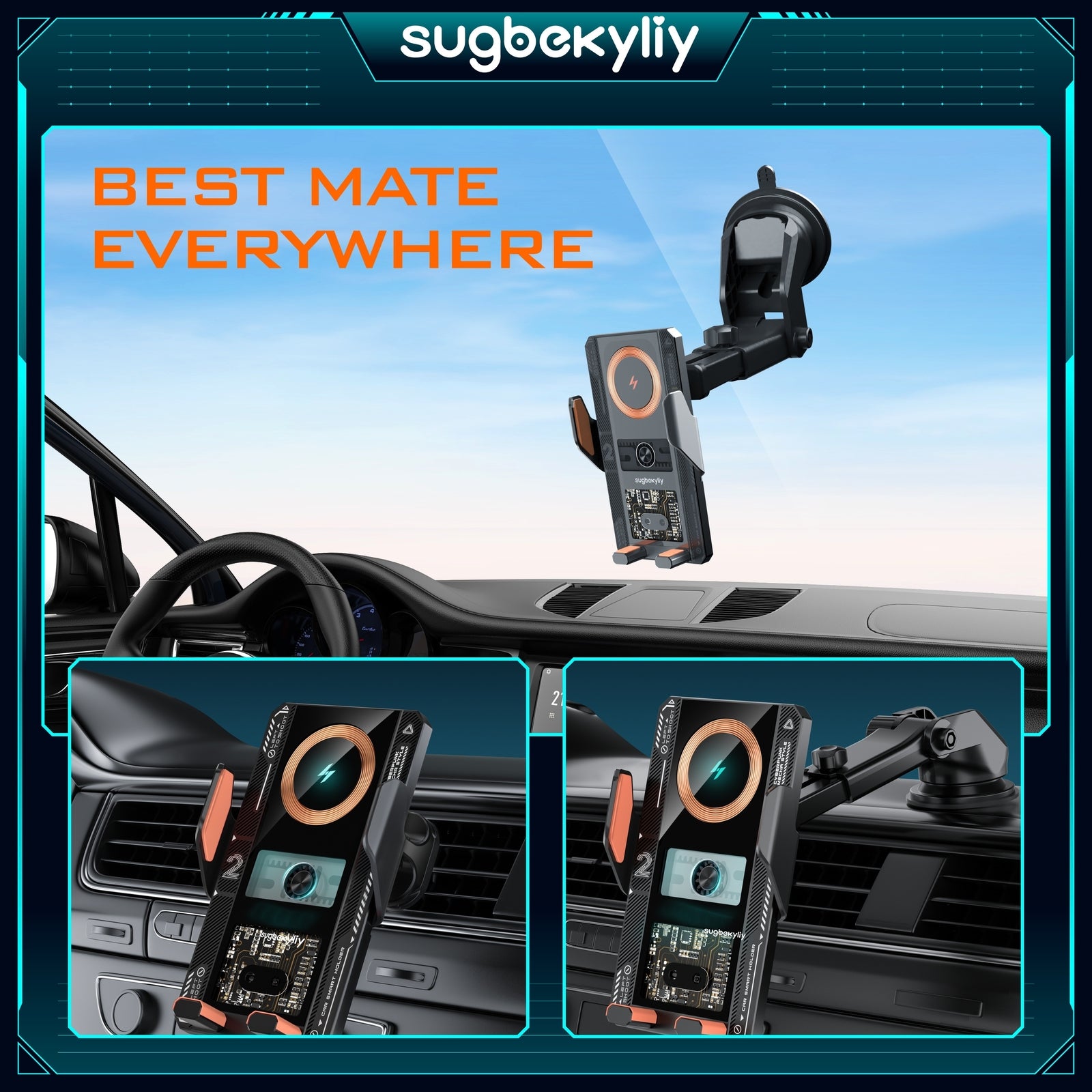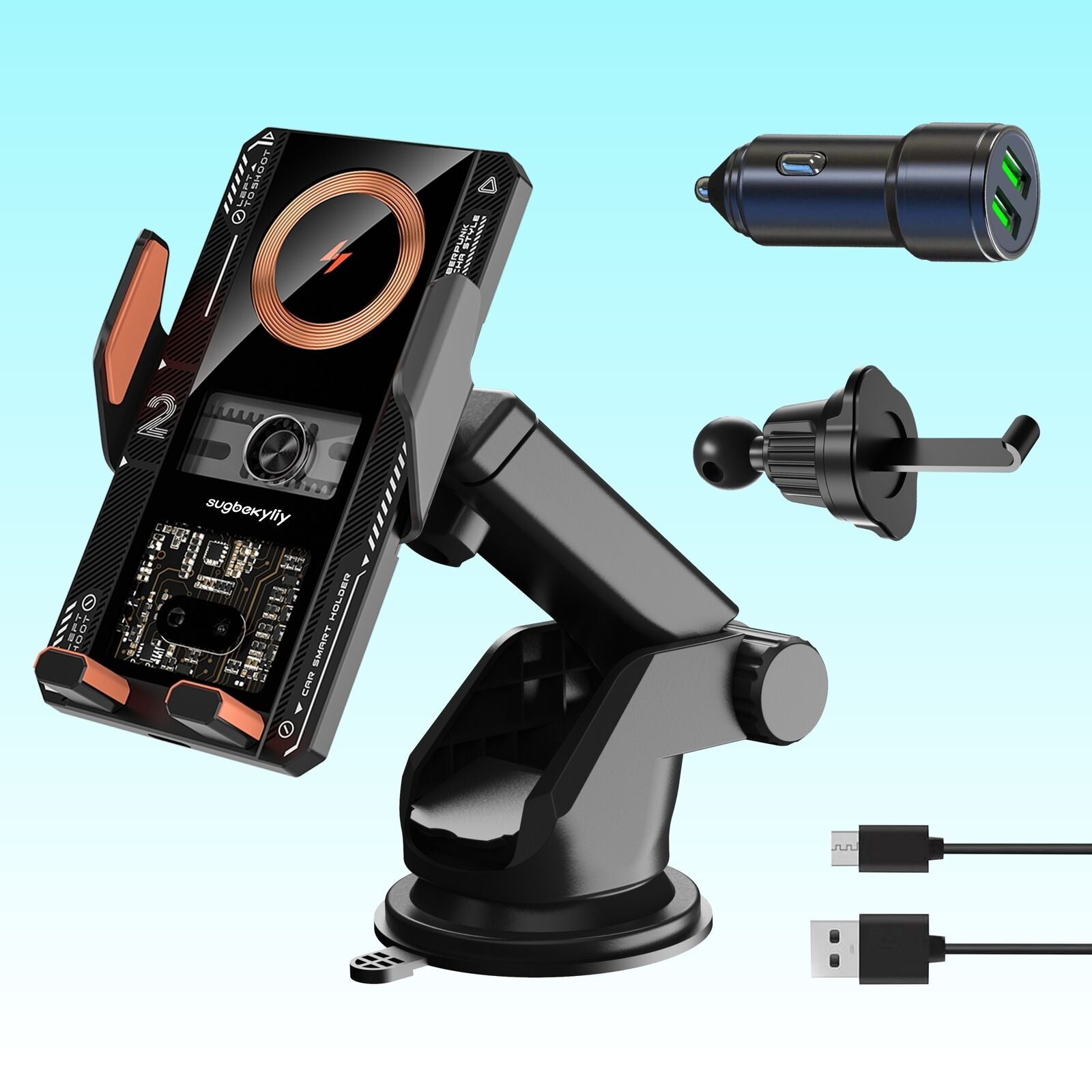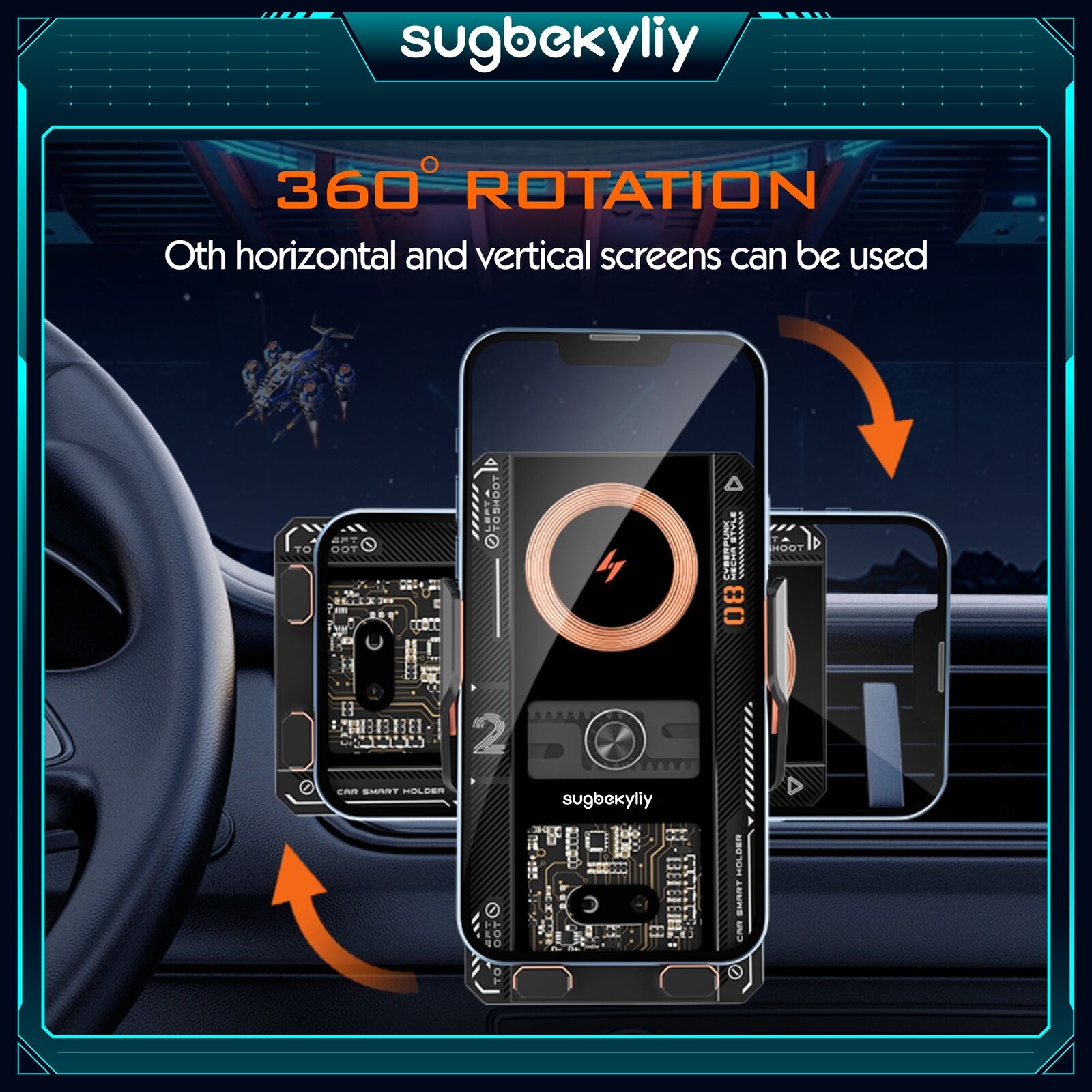 15W Fast Wireless Car Charger Automatic Clamping Mount Air Vent Phone Holder BK