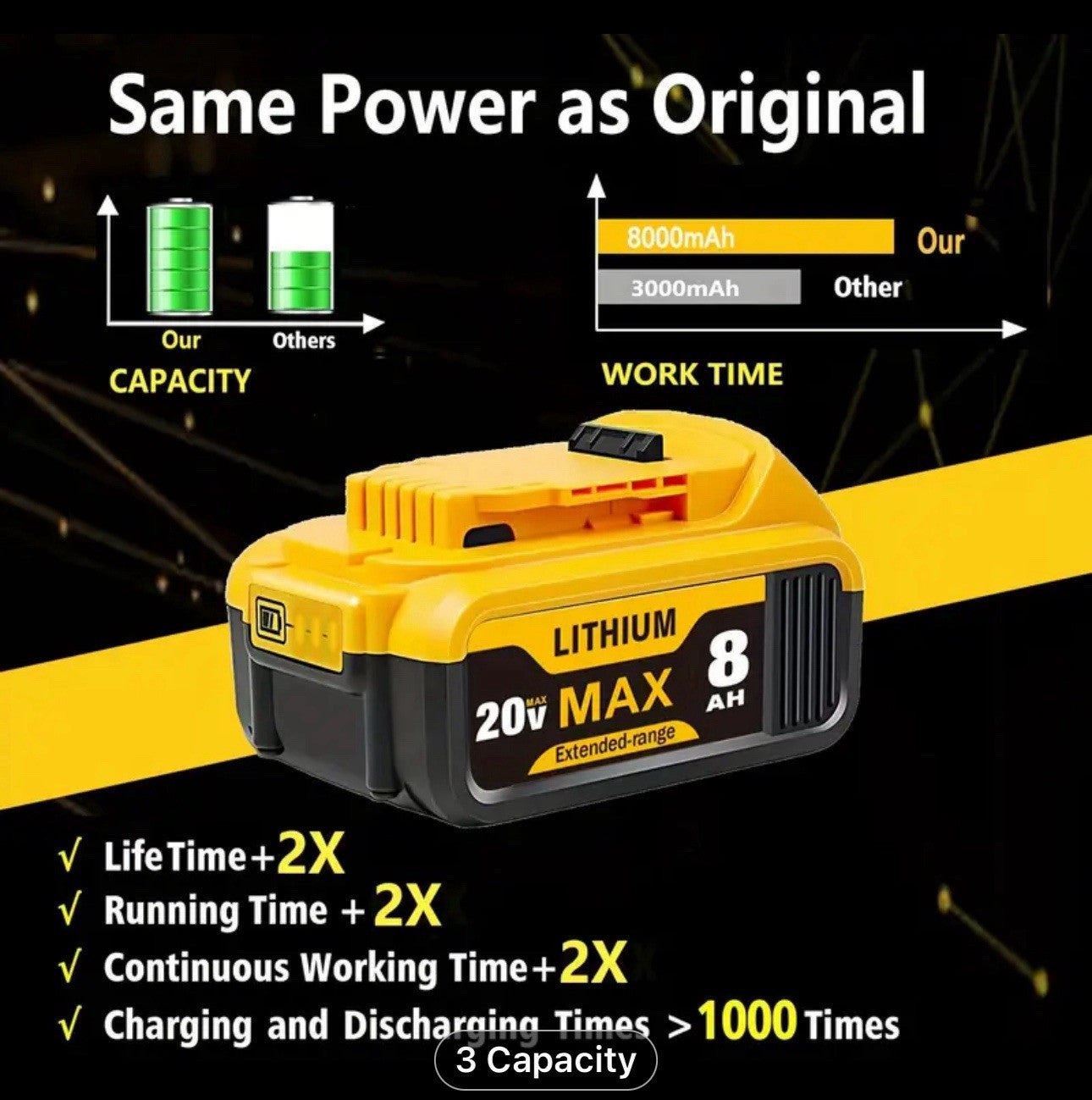 20V 8.0Ah Lithium-ion Battery for DeWalt 20Volt Power Tools DCB200 DCB205 DCB206