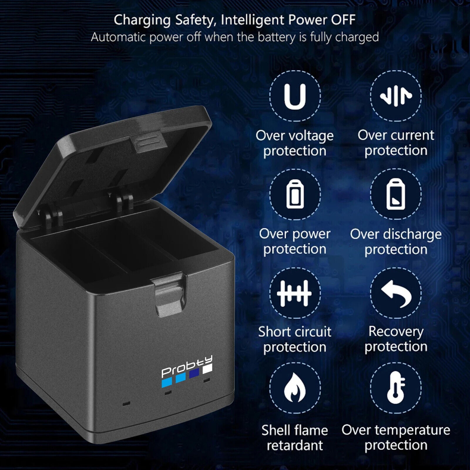 2280mAh for GoPro Hero 13 Battery+3-Slots Box Charger Black Camera Accessories