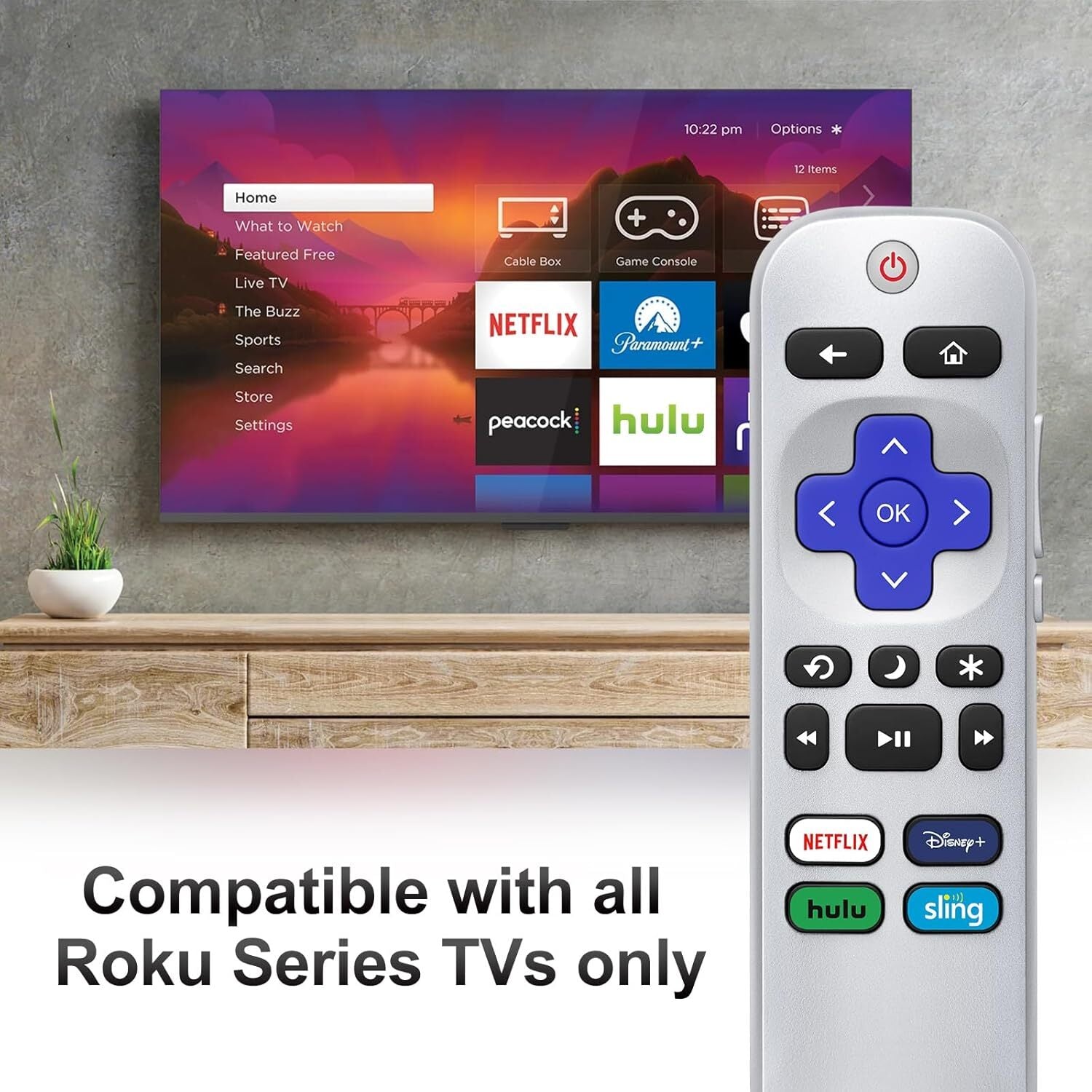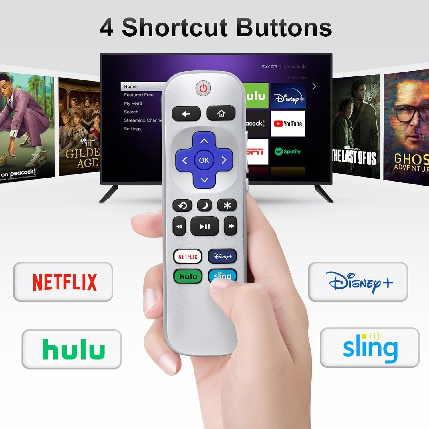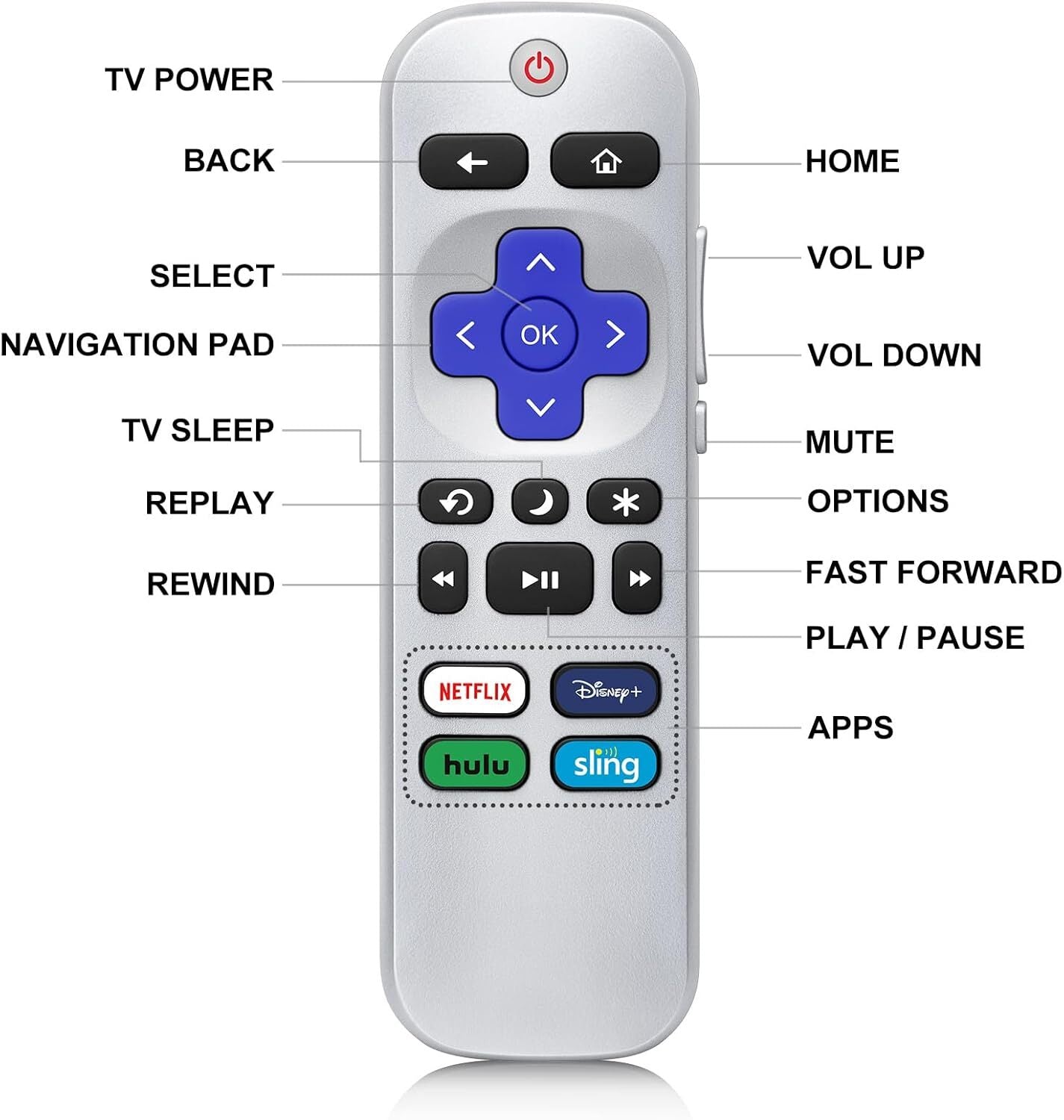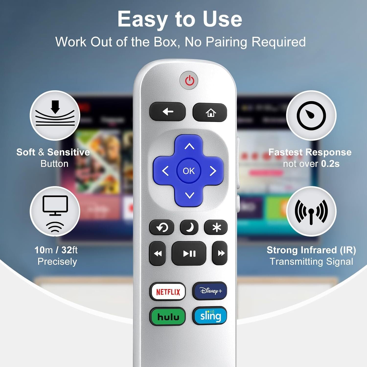 Replacement Remote Control for Roku TV Box, Compatible with All Roku TVs, TCL/Onn/Hisense/Philips/Westinghouse/Sharp Element Roku TVs