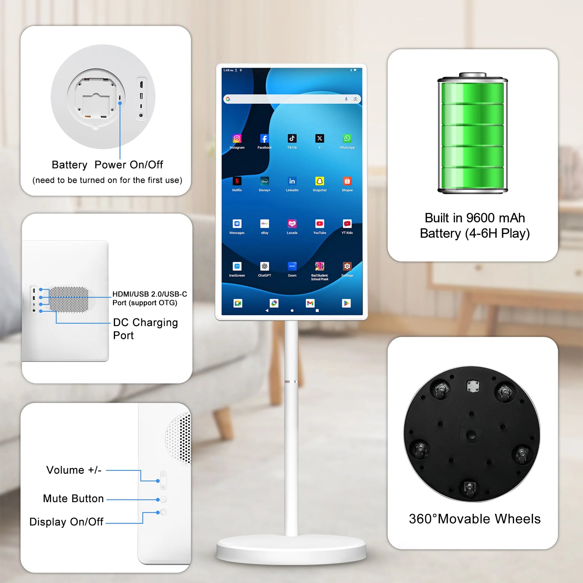 32 Inch Incell Lcd Display Interactive Touch Wireless Portable TV with Stand Android 15 Smart Mobile Display