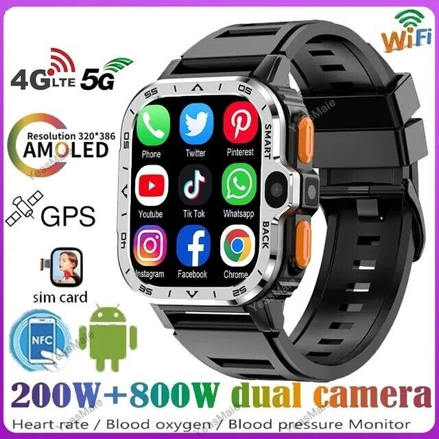 4G Android Smart Watch 2G 16G/64G ROM GPS SIM Card WiFi Dual Camera Smartwatch