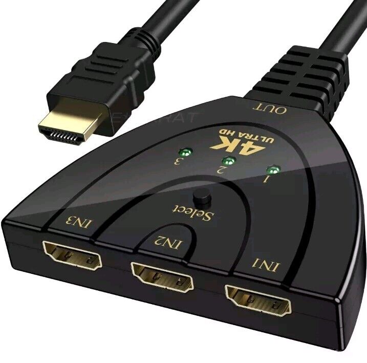 4K HDMI Switch 3 Port Splitter Cable Switcher HUB Adapter for HDTV PS4 Xbox PC. Condition is New. Shipped with USPS Ground Advantage.