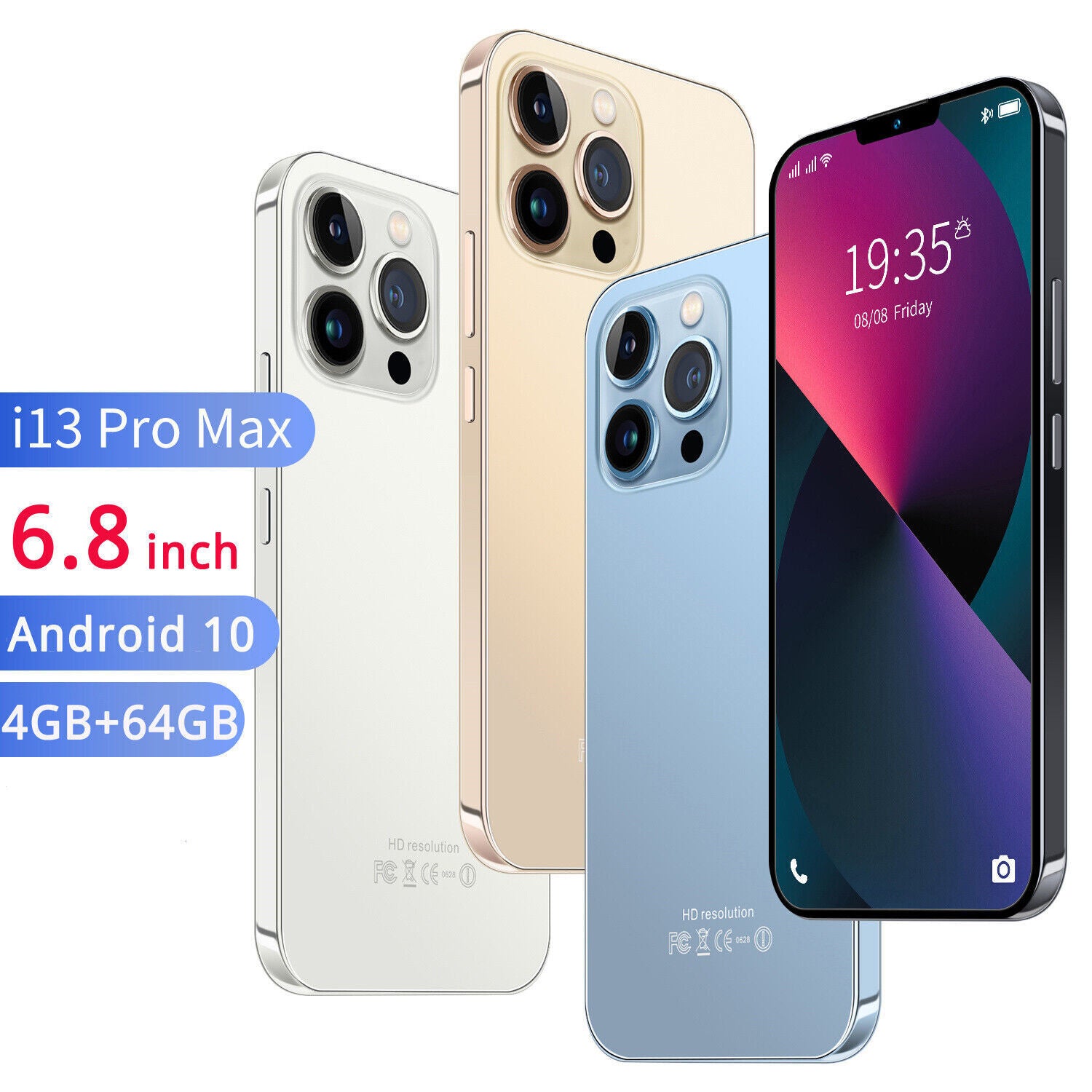 6.8" Unlocked i13 Pro Max Android 10 Smartphone Dual Sim 4G Phone Mobile 4+64 GB