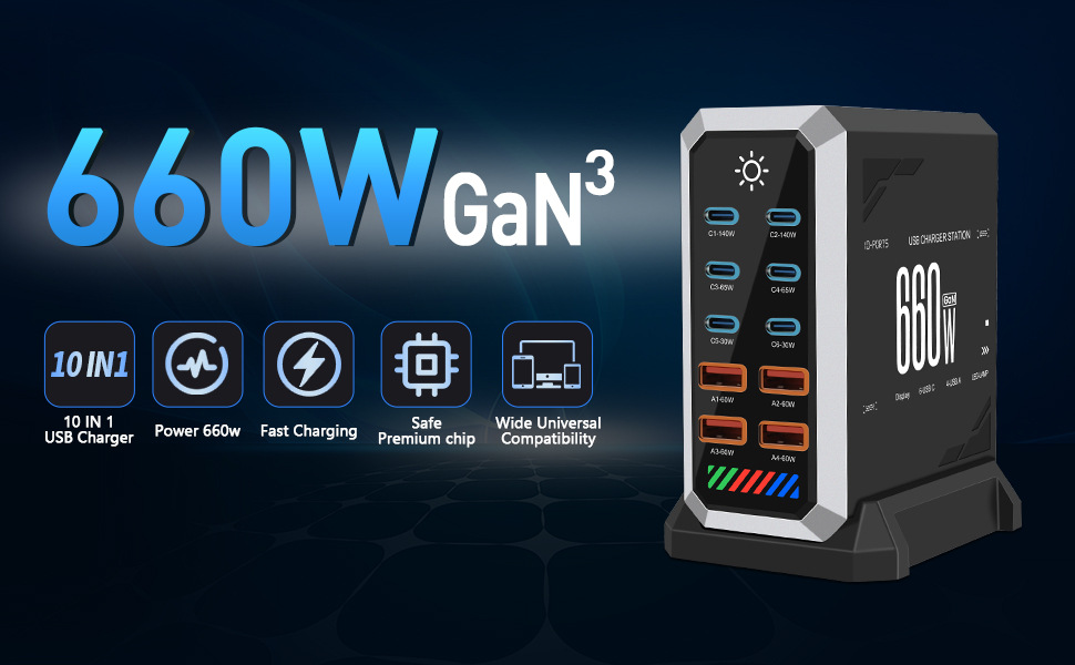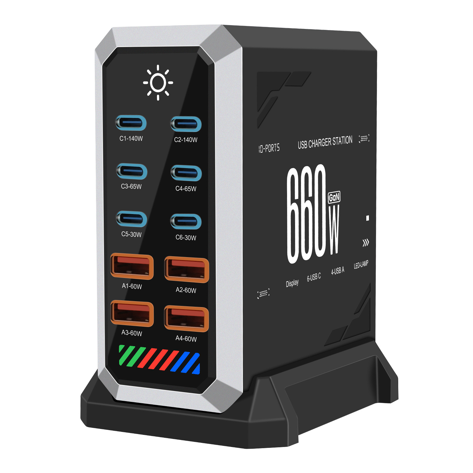 660W 10 Port GaN USB C Charger Station Type C PD Fast Charger For iPhone Macbook
