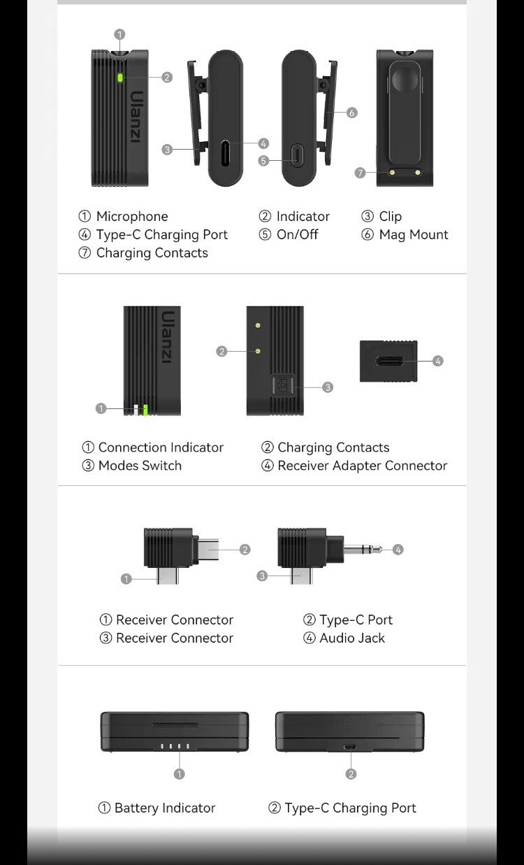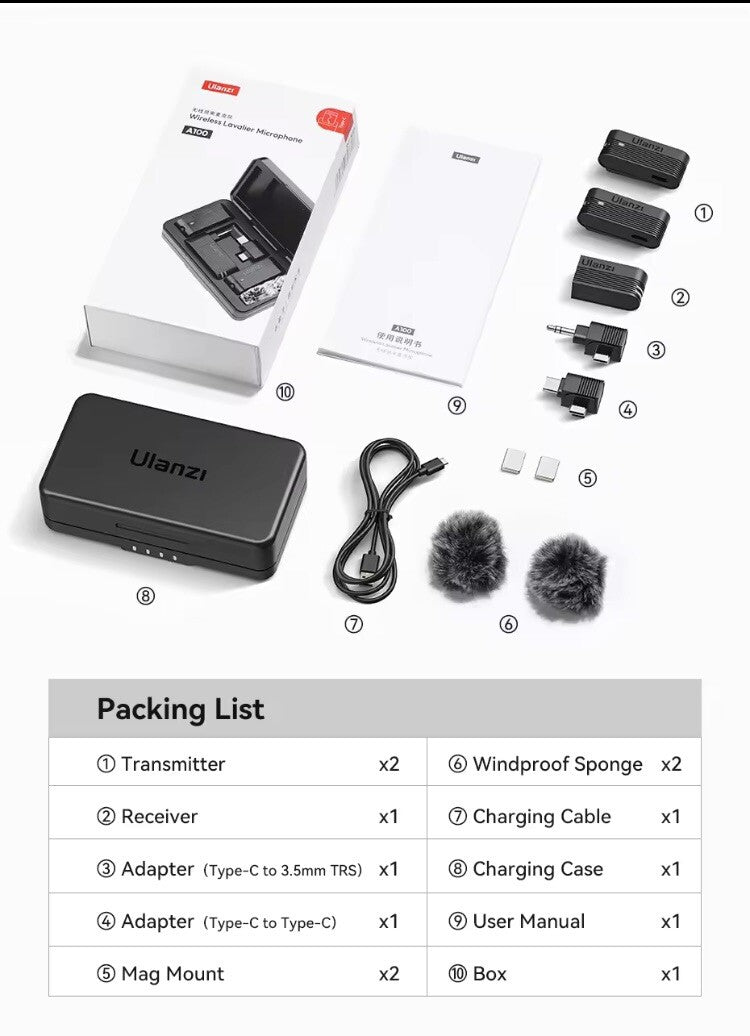 A100 Wireless Microphone Lavalier Lapel MIC for iPhone 16 15 17 Pro & pro max