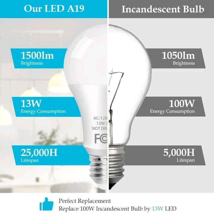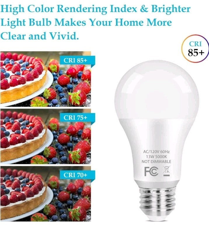 A19 LED Light Bulb, 100 Watt Equivalent LED Bulbs, 13W Daylight White 5000K. Condition is New. Shipped with USPS Ground Advantage.