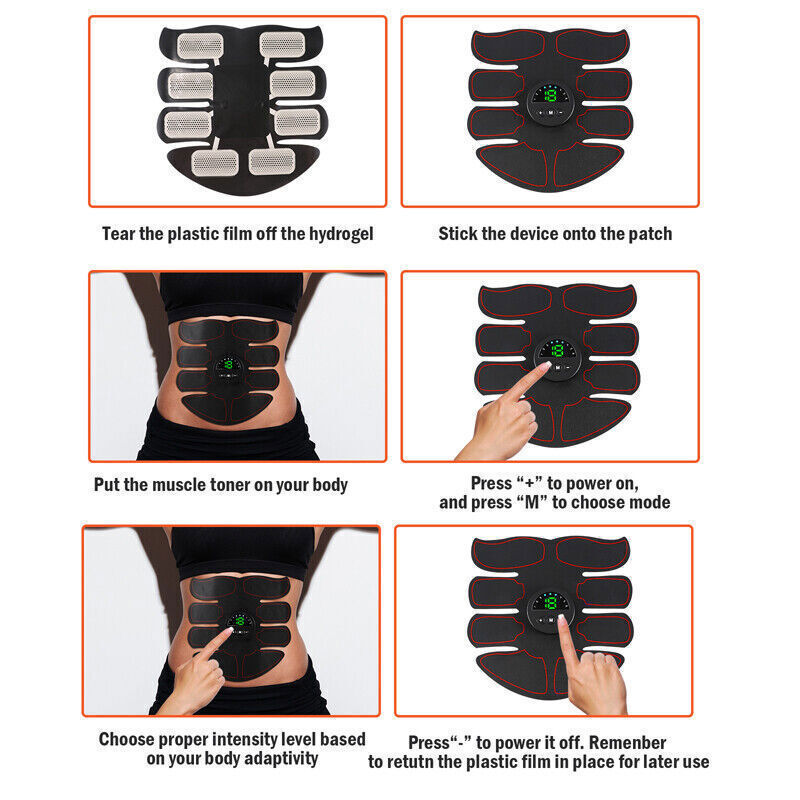 1x Abdominal Pad. -- Advanced EMS Technology : This muscle toning machines work with EMS(Electrical Muscle Stimulation) technology stimulates your muscles with powerful electric pulses that automatically tighten and tone your abs.