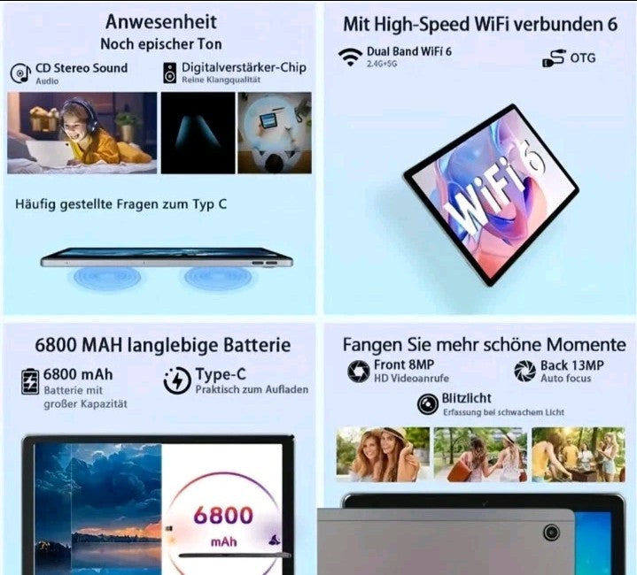 AEEZO Tablet 11-inch 2K Tablet Android 1, Octa-Core Processor, 4G+8G Memory Expansion, 128GB ROM (1TB TF), 1920x1200 FHD IPS Display, 8MP + 13MP, 6800mAh with Widevine L1