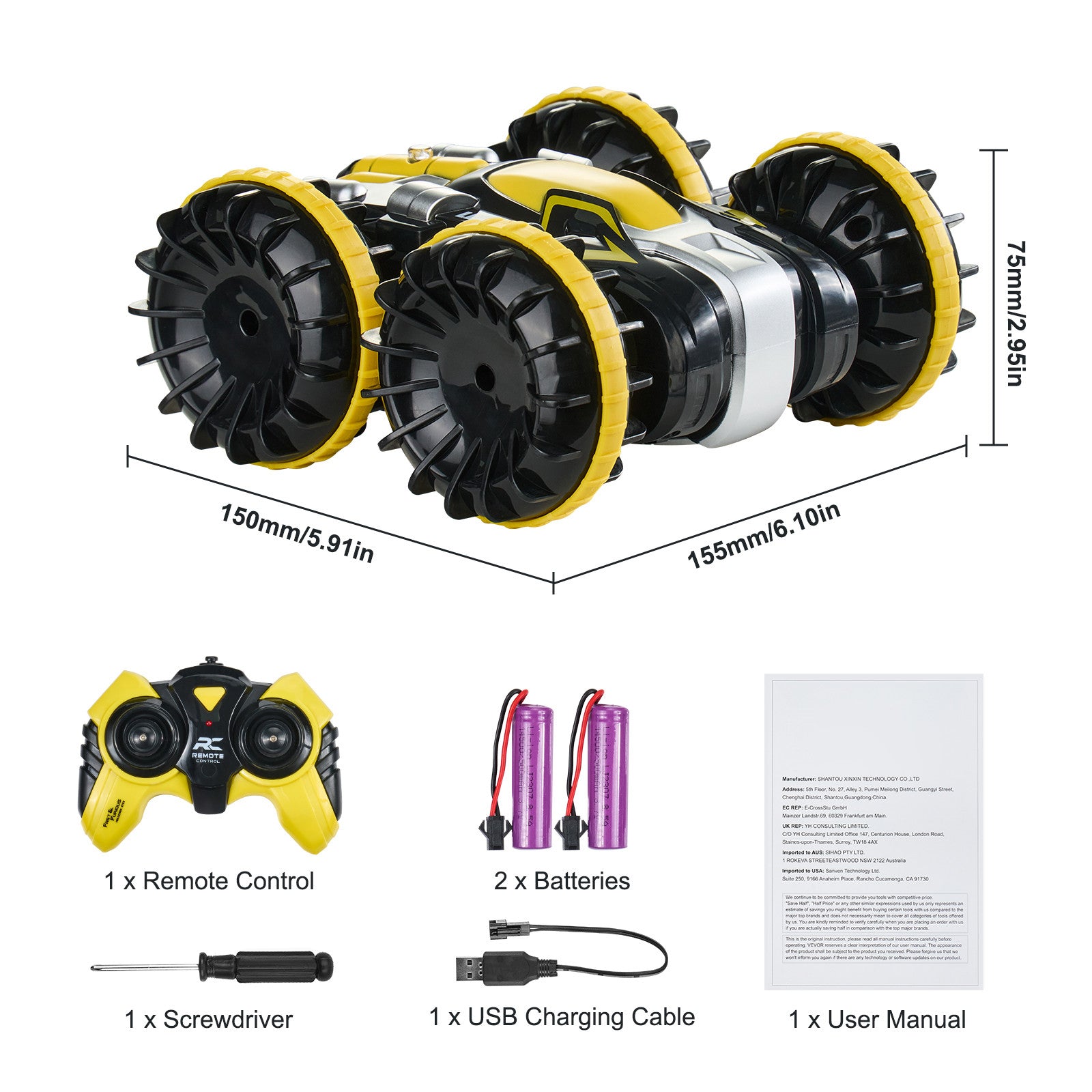 Amphibious Remote Control Car Boat 2.4 GHz 4WD RC Boat Kids Adults Yellow