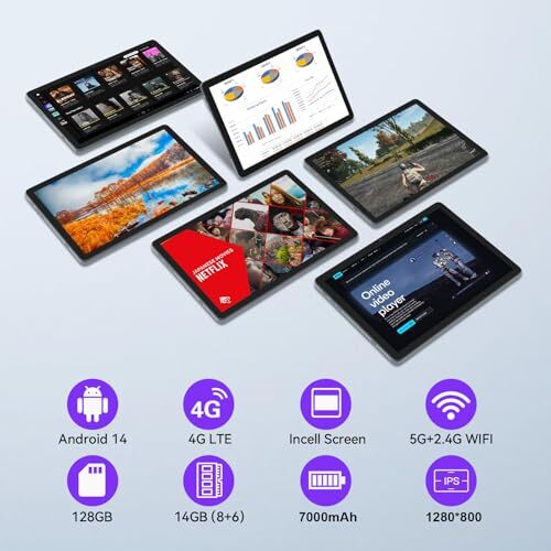 Android 14 Tablet 4G Cellular 14GB RAM(8+6 Virtual)+128GB ROM+1TB, 2024 Newest
