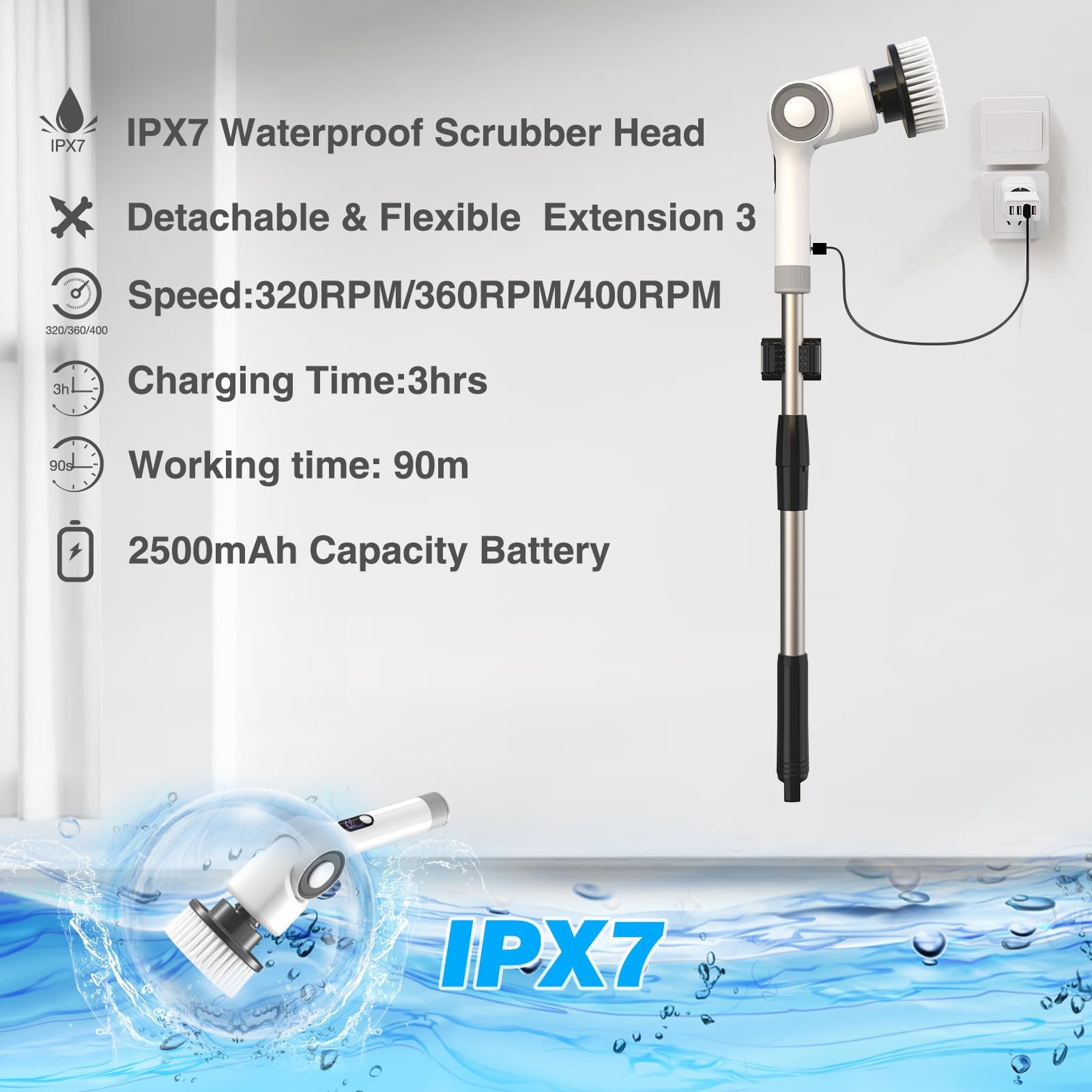 Angle Adjustable Spin Scrubber Cordless Cleaning Brush with 3 Speeds Cordless...