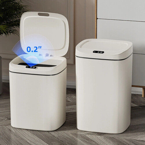 1. Smart Touchless Bathroom Trash Can: Automatically opens lid when detecting human body or garbage, ensuring hygiene and convenience. Lid automatically lifts when hand approaches, closes when hand leaves.2. Easy to Clean: The non contact bathroom trash can is made of excellent plastic materials such as ABS, PP, the surface is long lasting and smooth, it can easily remove the dust on the surface of the trash can with just 1 touch.