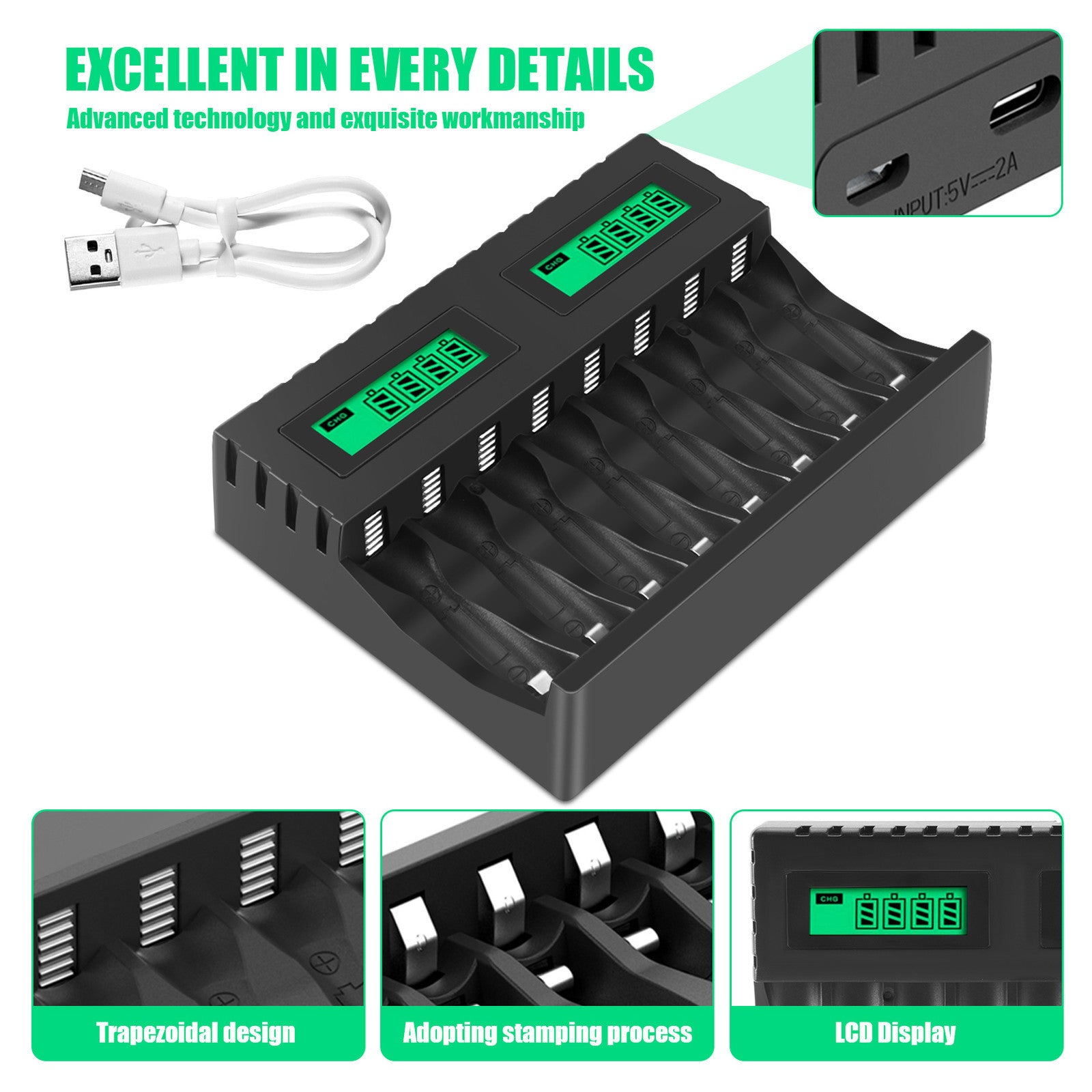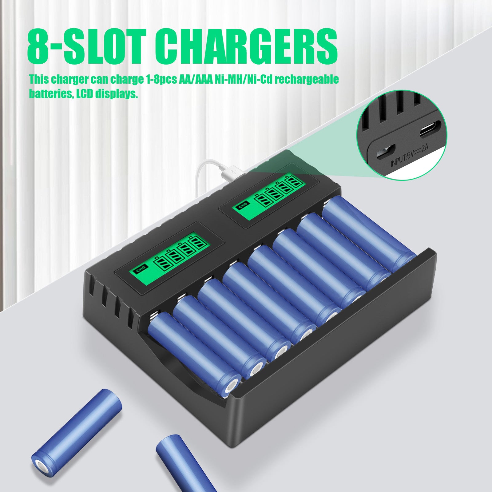 Battery LCD Display Intelligent 8-Slot Chargers for AA/AAA NiCd NiMh2049
