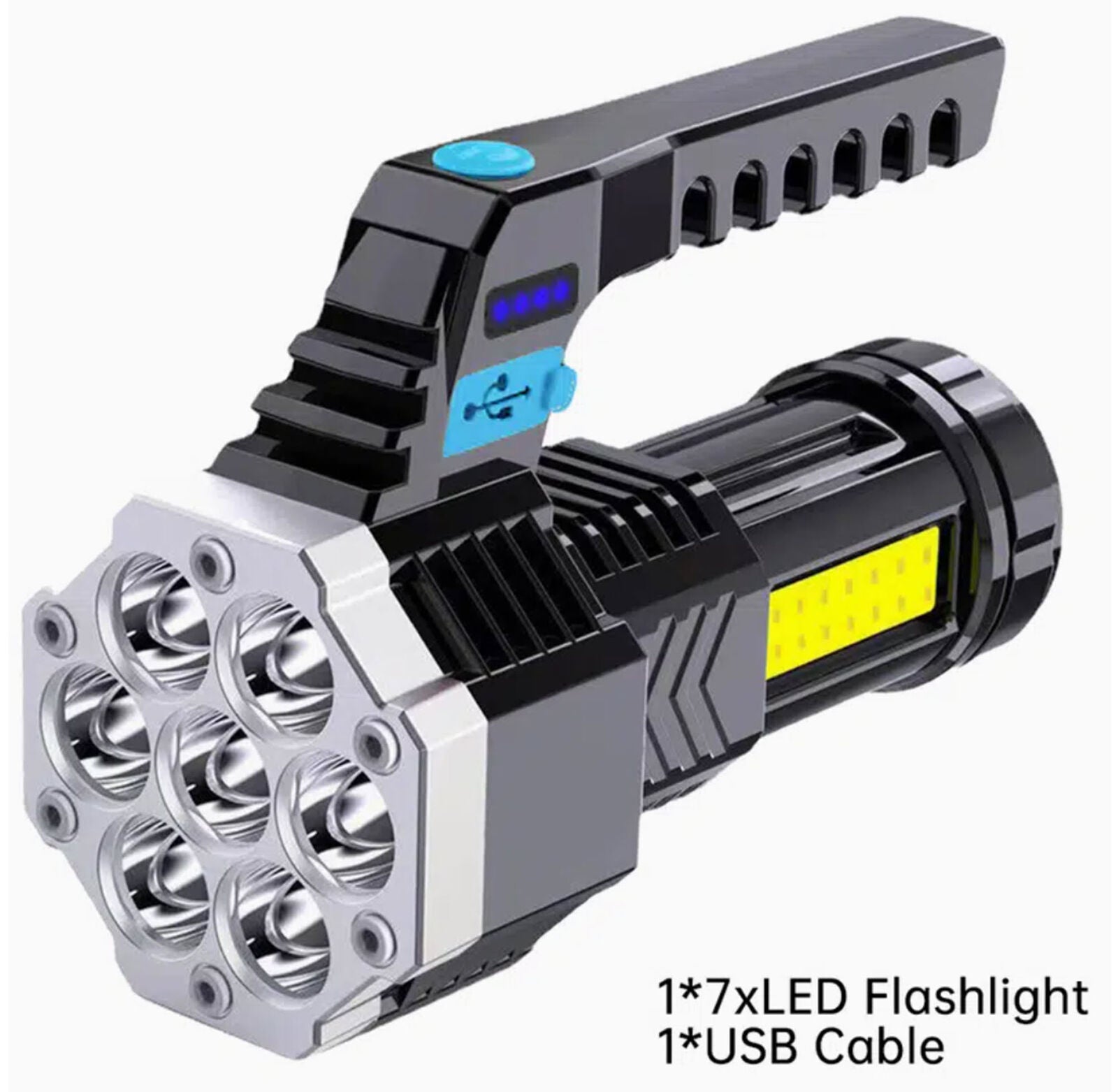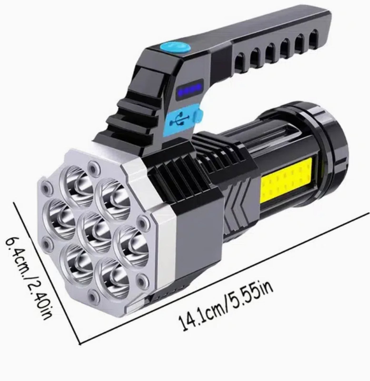 High Qualitity Light Weight for an easy to carry Flashlight. Choose 7 4core lamp beams array design, four cores lets the brightness more powerful. Comes with USB cable for easy charging. FEATURES: ---Metal Finish Type: Matte ---Water Resistance Level: Not water resistant ---Power Source: Rechargeable ---Included Components: USB Cable Note: Specifications are approximate and subject to change. Color may be different than shown.