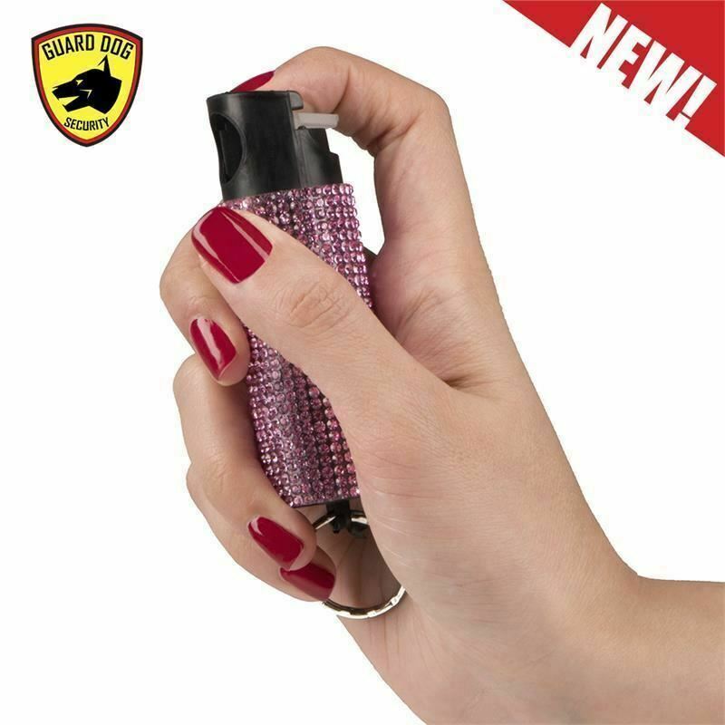 Canister of pepper spray in a pink jeweled hard case with a built in key ring. Pink jeweled case has a built-in key ring. Self Defense Products. Holds a 1/2 oz. of pepper spray. Sling Shot. We are the leading supplier of knives, swords, stun guns, airsoft and pepper spray.