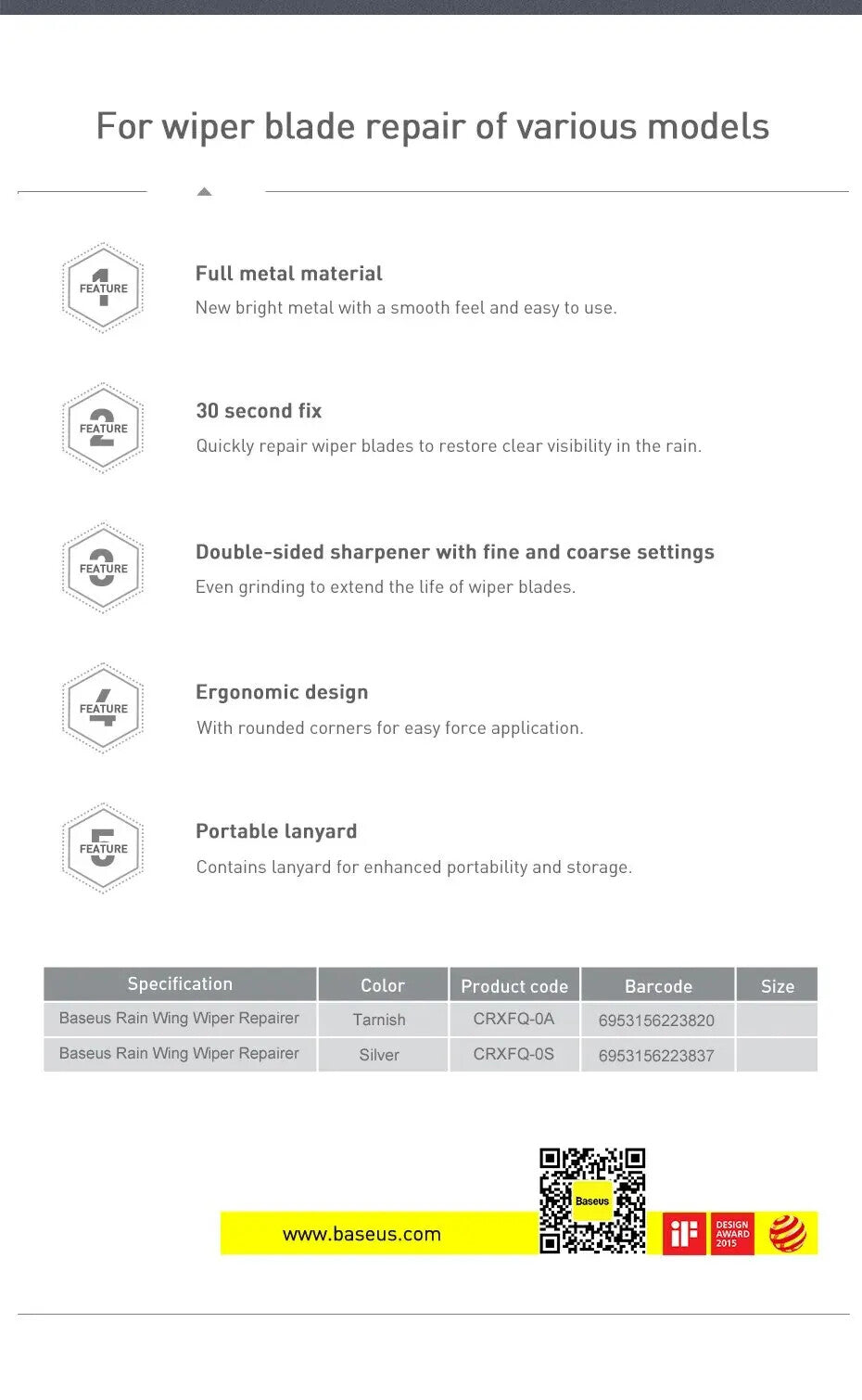 3.Double-sided Sharpener with Fine and Coarse Settings. Applicable models: Wiper blade repair of various models. Weight: 40g. 2.30 Second Fix.