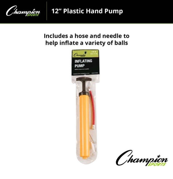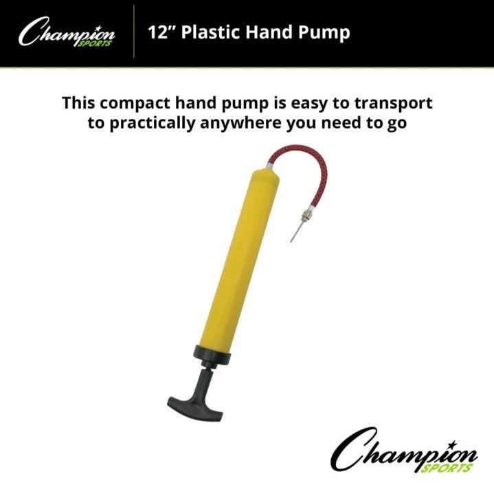Champion Sports IP12 12" Long Standard Hand Pump - Yellow/Black New. Shipped with USPS Ground Advantage.