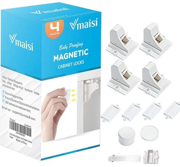 Child Safety Magnetic Cabinet Locks - vmaisi 4 Pack Adhesive Baby Proofing. Condition is New. Shipped with USPS Ground Advantage.