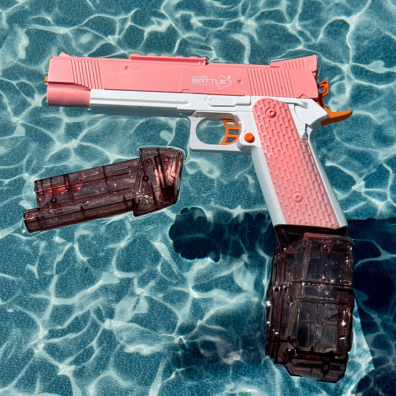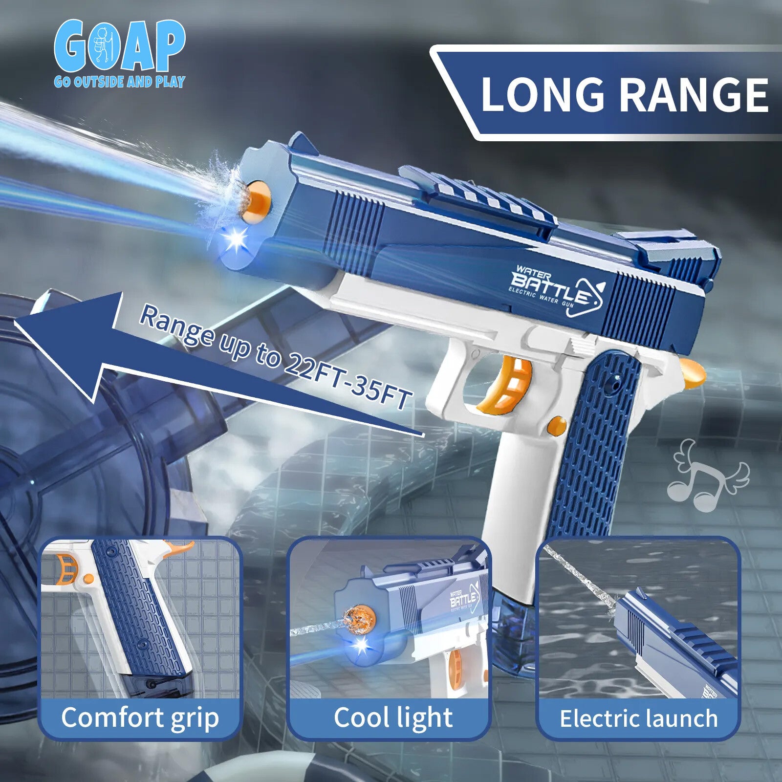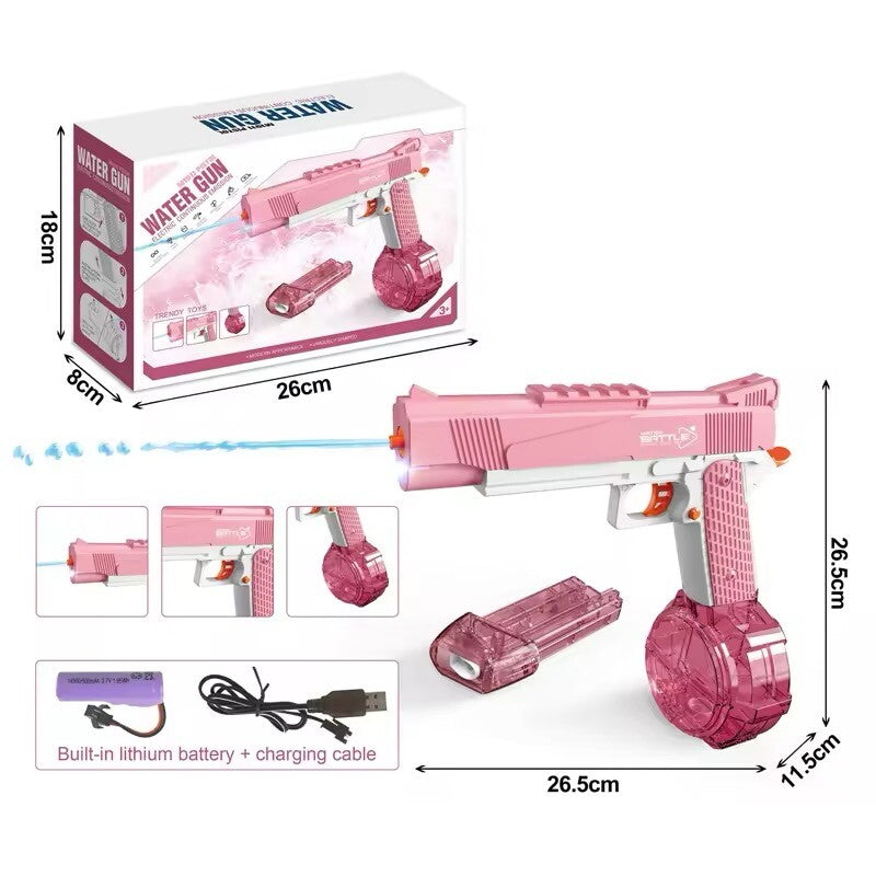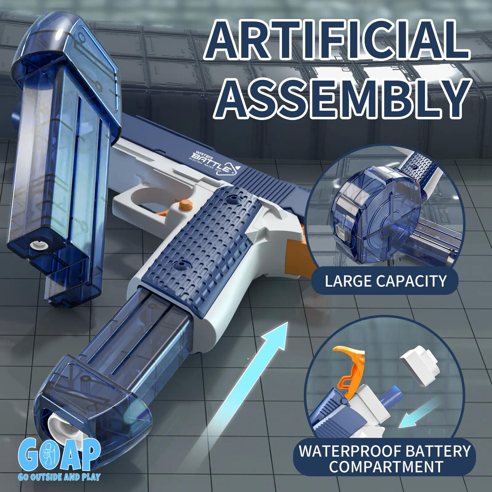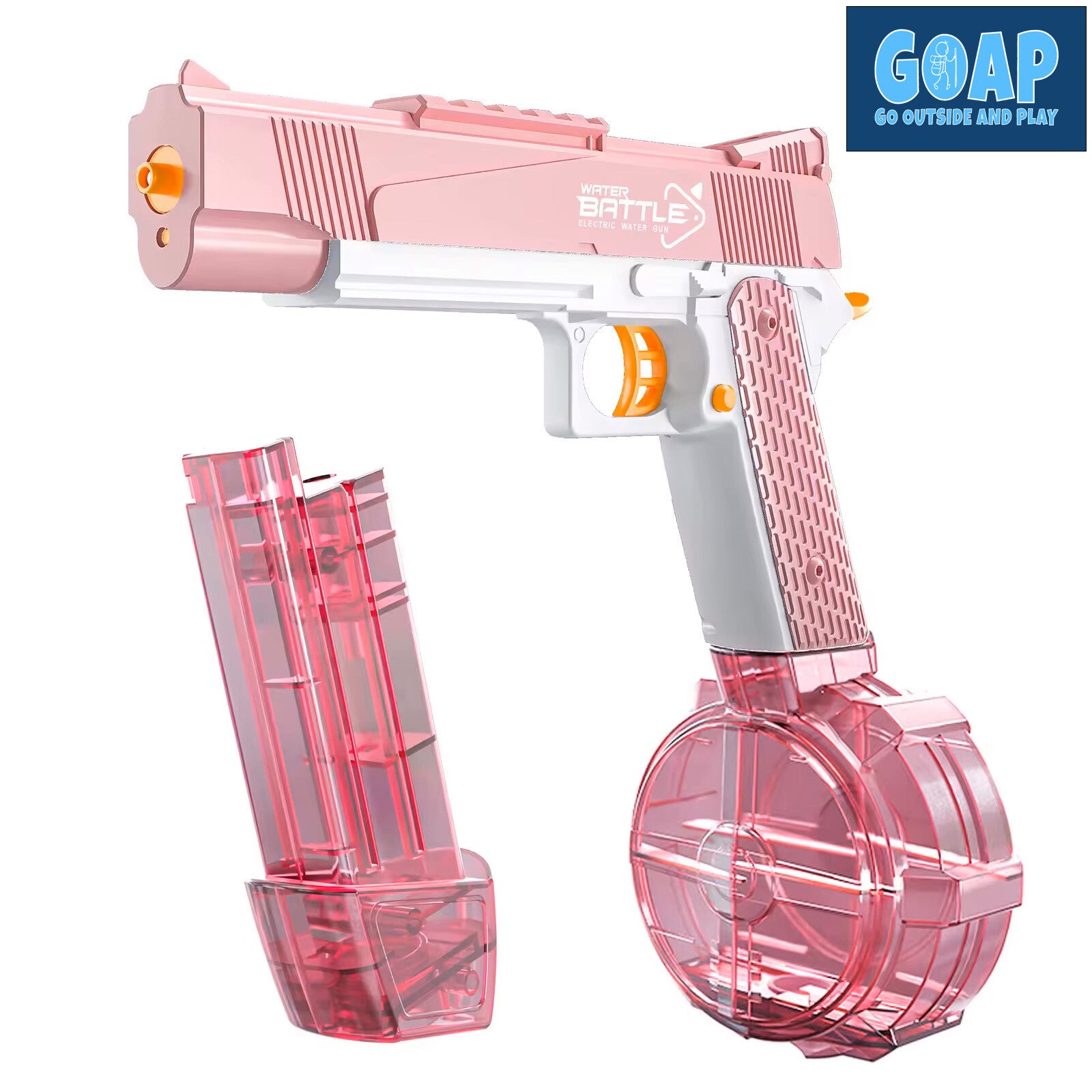 Introducing the Continuous Fire Electric Water Gun from GOAP! This high-powered toy is perfect for pool parties , beach days, or epic water battles with friends and family. With its sleek blue (or pink) and white design and easily refillable plastic container, you'll be ready for non-stop fun all day long. Get your hands on this must-have summer essential now!!