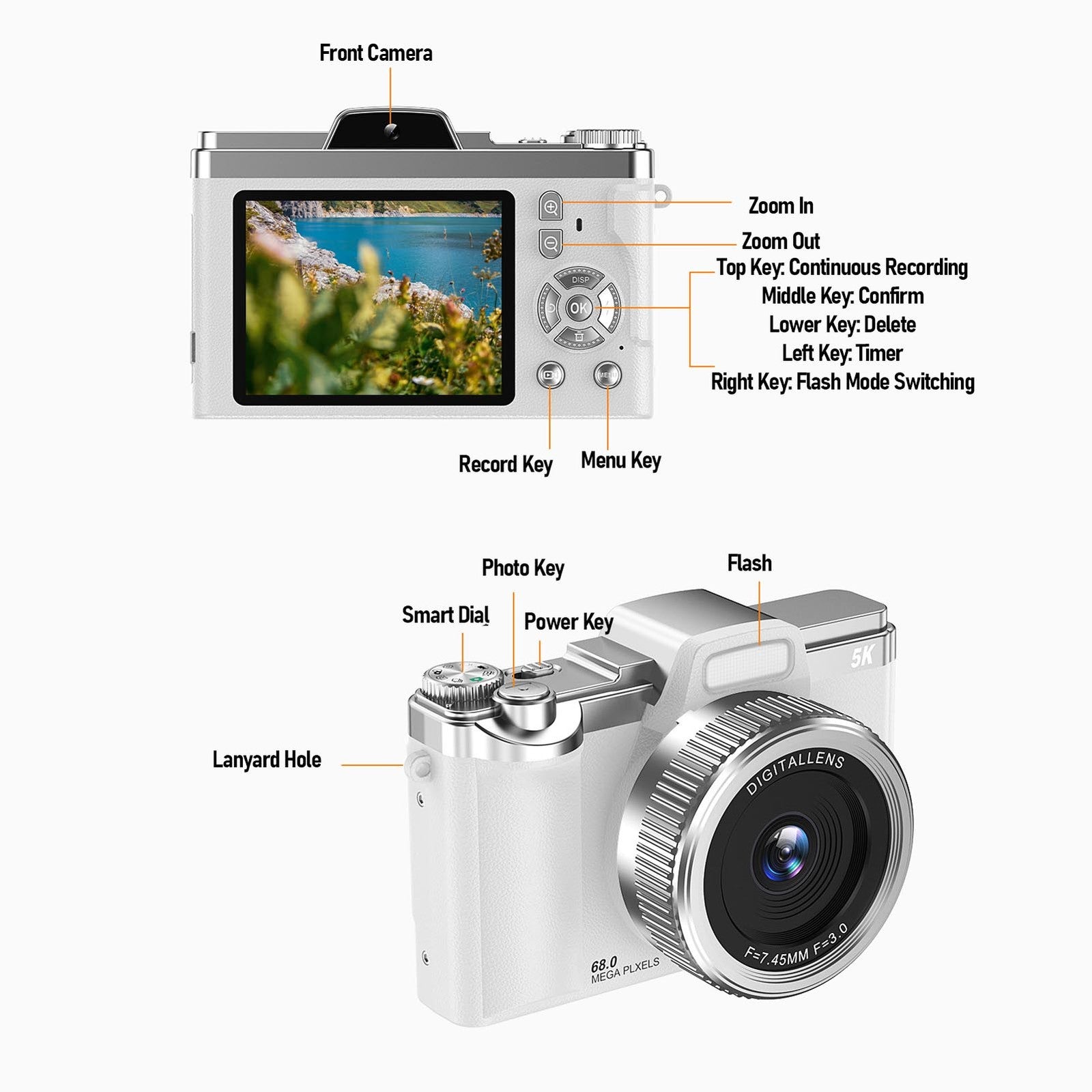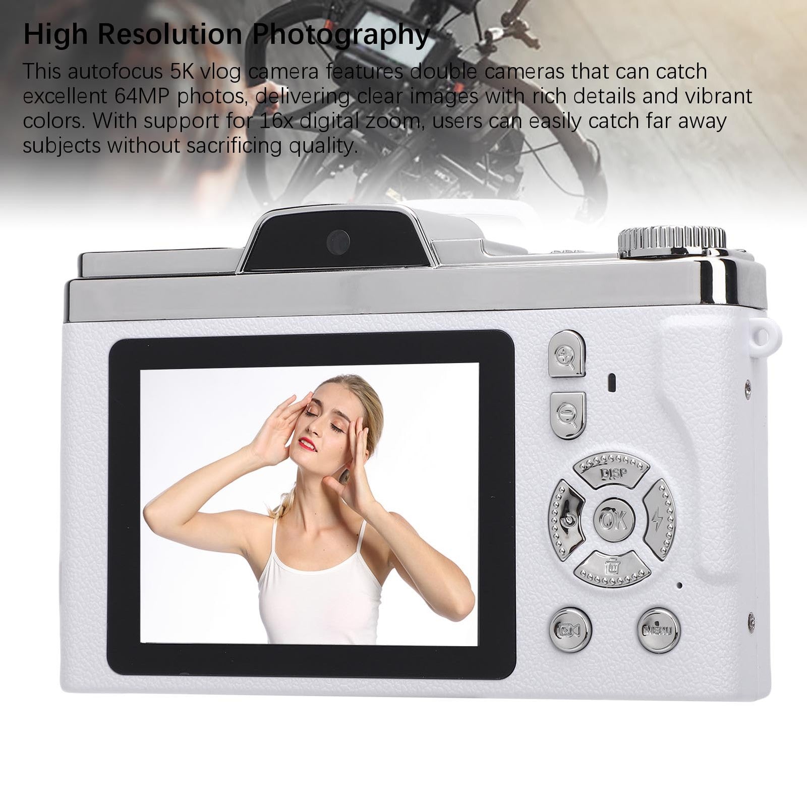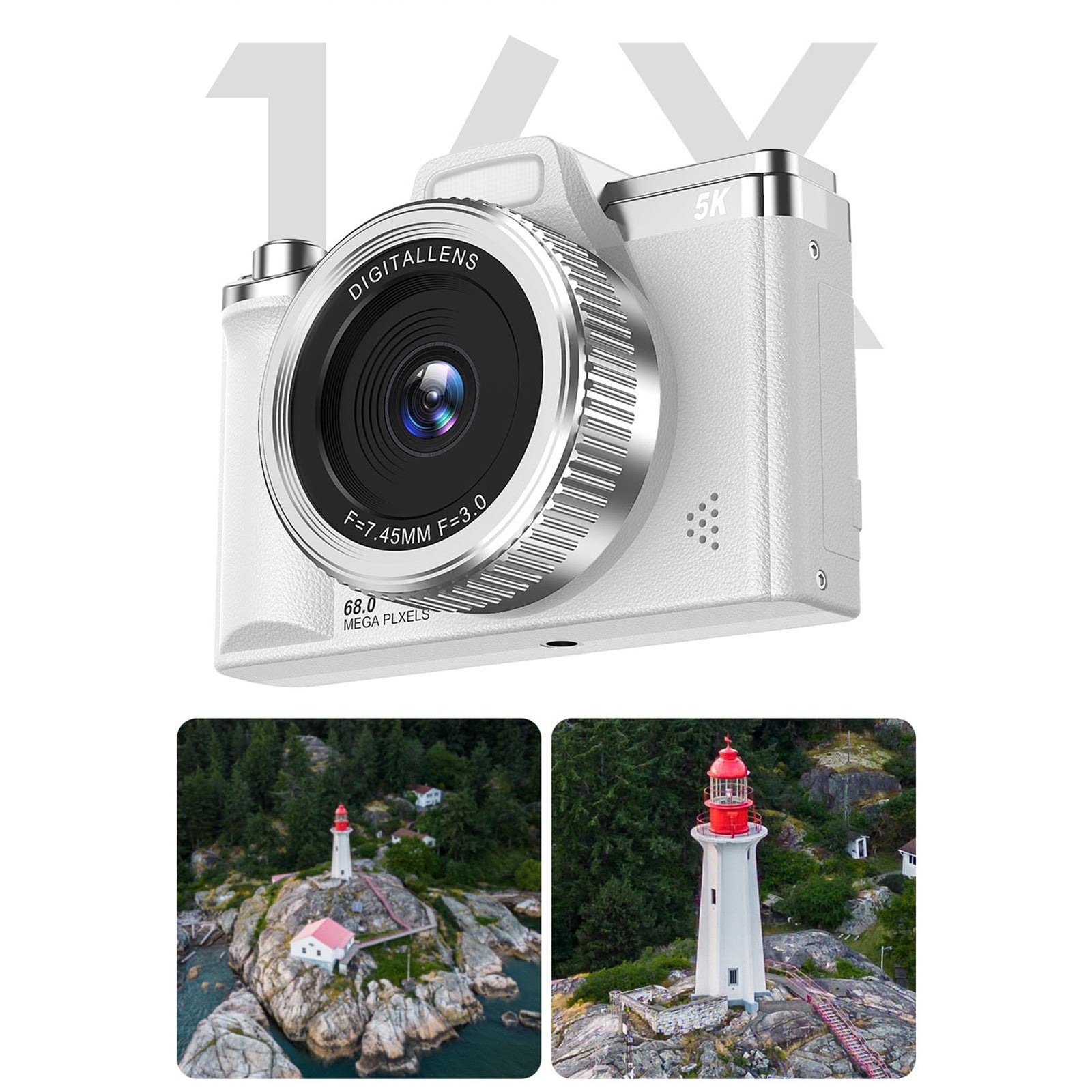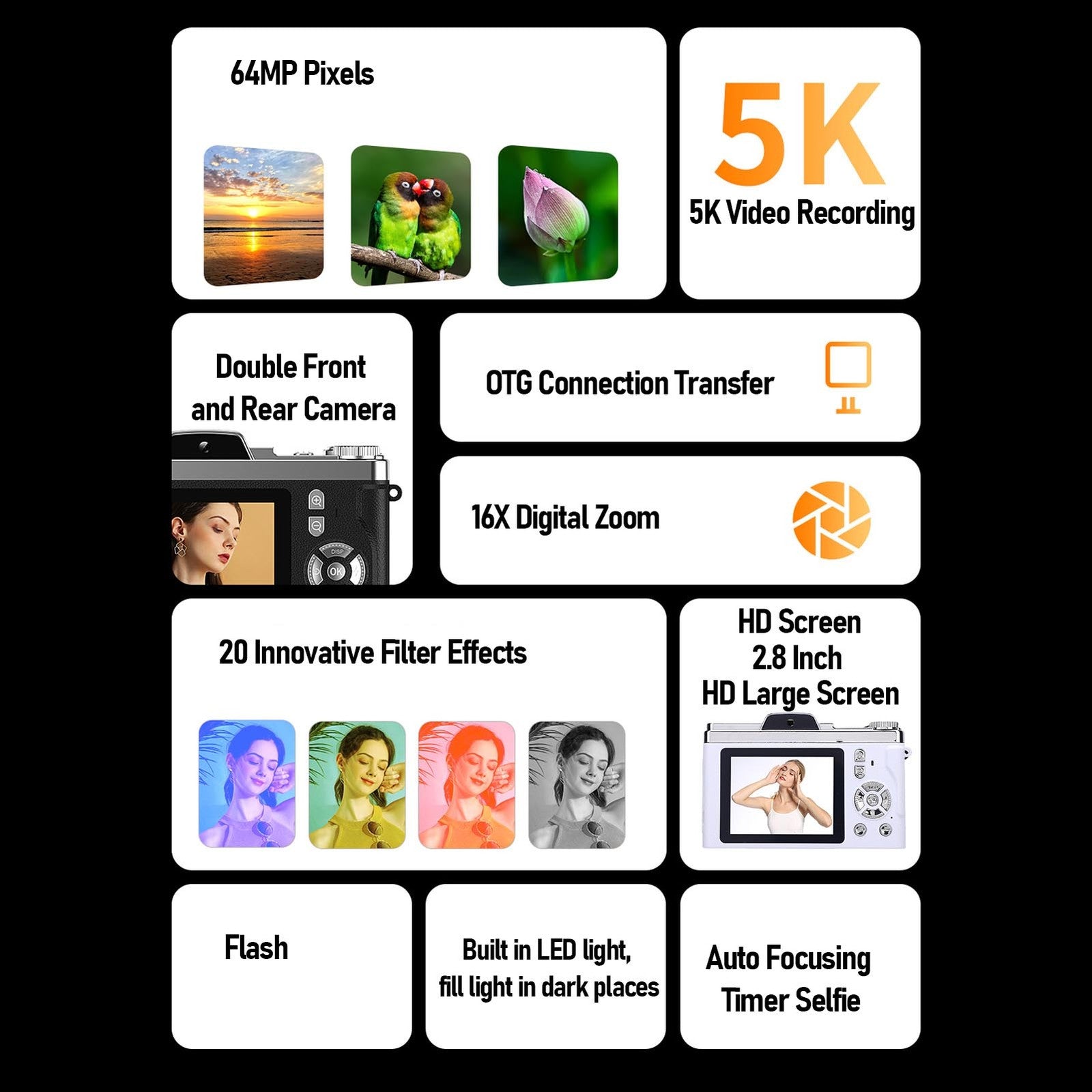 Digital Camera 64MP Pixels 5K HD 16x Zoom AF Autofocus Retro Compact Vlog Kit