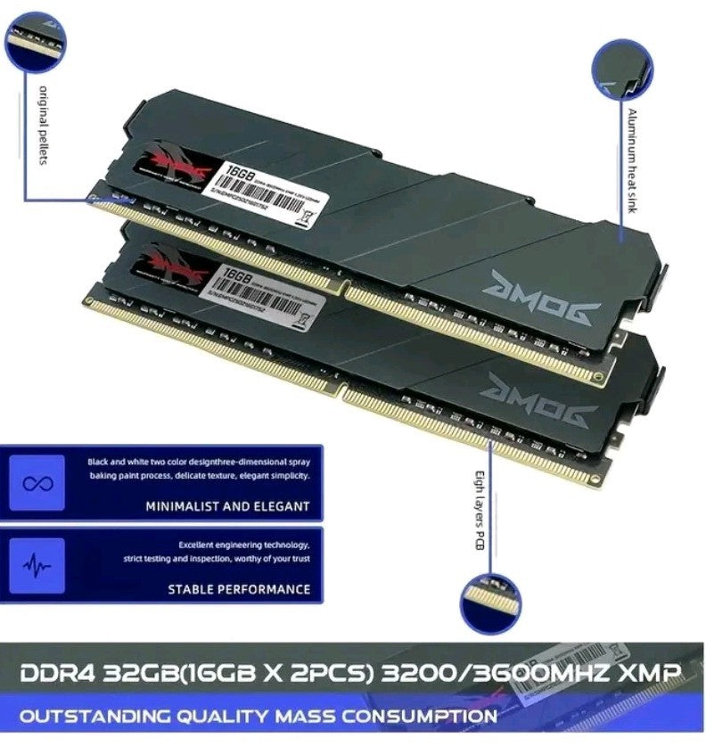 DMOG DDR4 RAM 32GB 16GB x2 3600MHZ UDIMM PC Desktop Memory