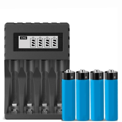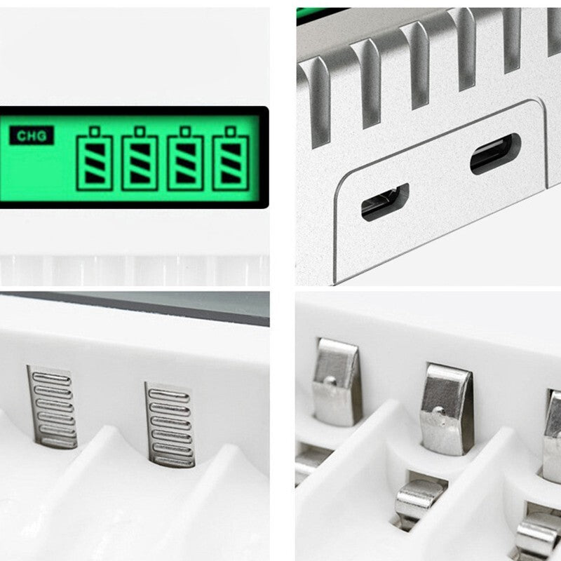 Efficient LCD Charger with 4 Slots Suitable for AAAAA Rechargeable Batteries