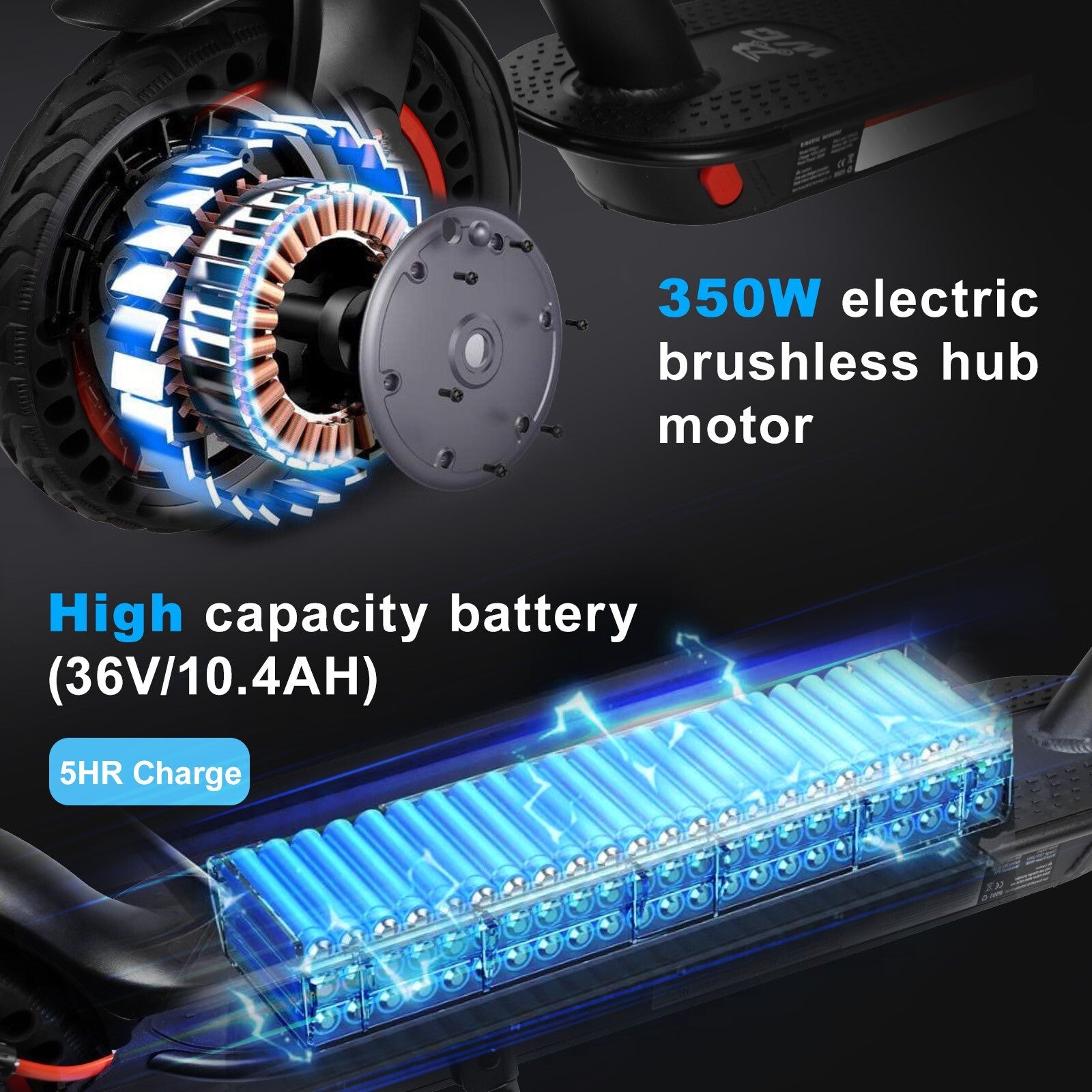 350W motor. Max output of 350W brushless motor can easily up to Max Speed 15.5MPH and 10°-15° Hill Grade. - Portable Folding & Young People's Scooter - The perfect combination of Car and Scooter traveling.