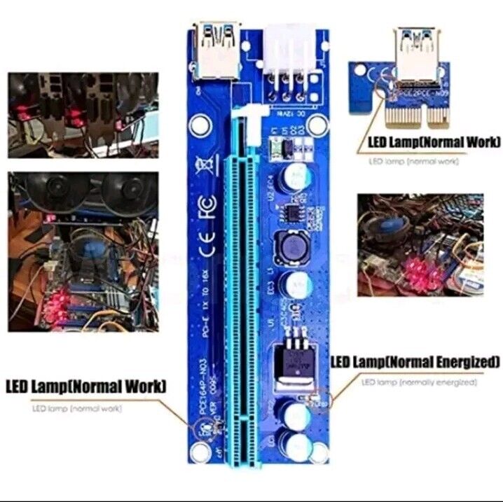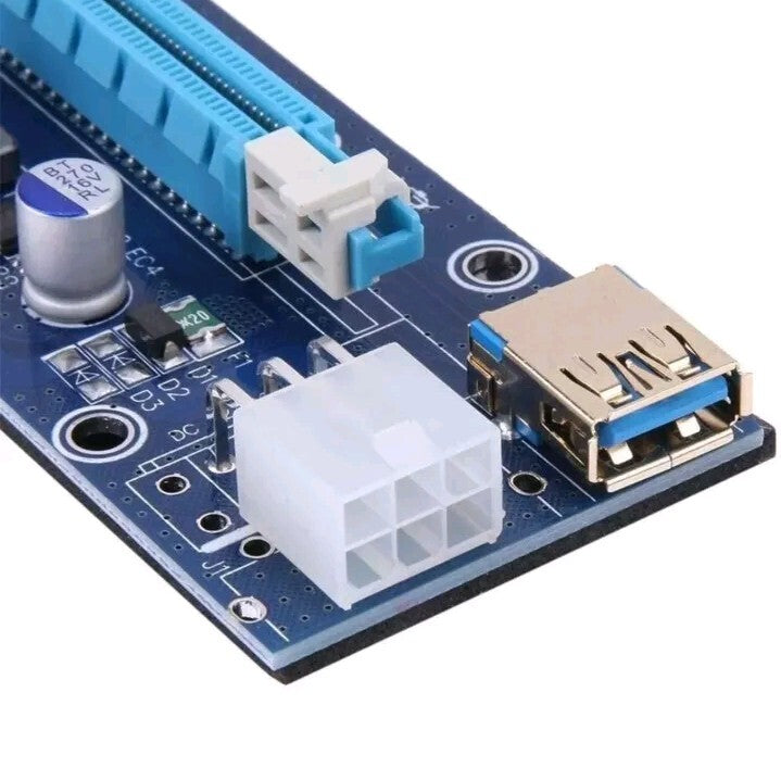 Ethereum PCI-E 1x to 16x Powered USB3.0 GPU Riser Extender Adapter Card VER 009s. Shipped with USPS Ground Advantage.