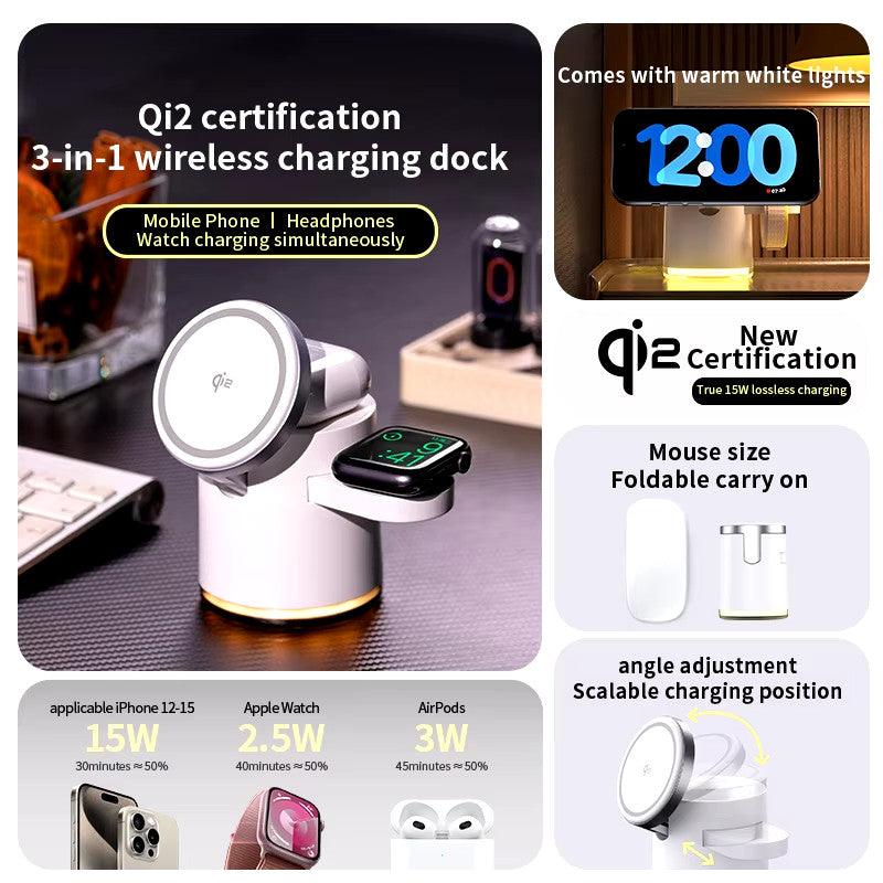 Fast Wireless Charging Station Stand Folding Holder for iPhone, Airpods, Watch
