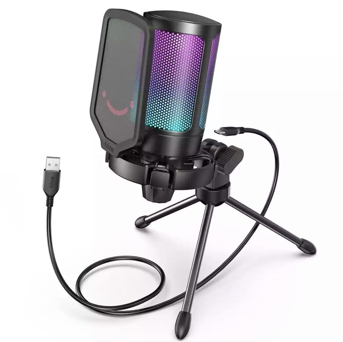 FIFINE Gaming Microphone USB PC Mic for Streaming Podcasts Recording Condense...