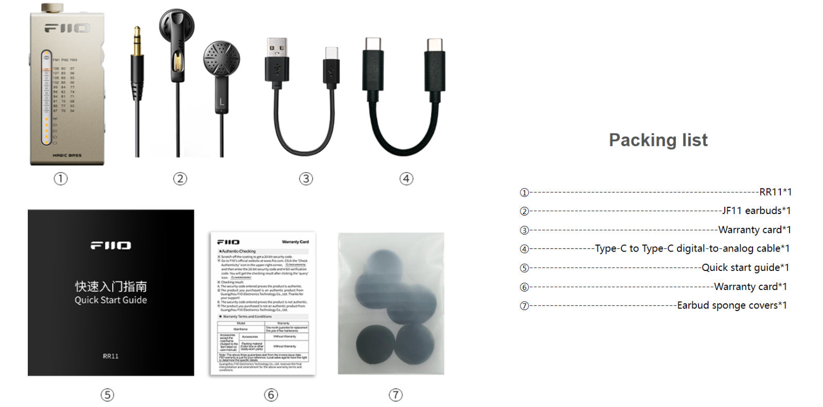 | Name/Model | RR11 | Hardware solution | SoC: MS430, FM radio: SI4831, analog sound effect and amp: FIIO DDB AS100 custom chip |