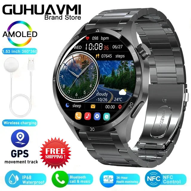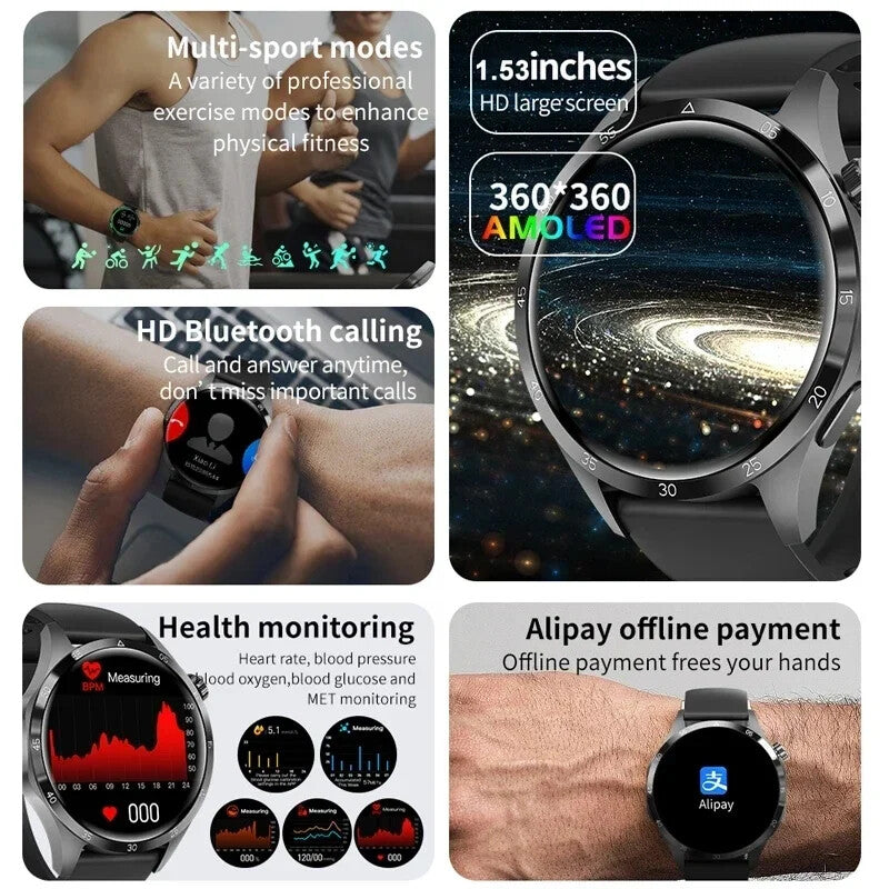 Stay effortlessly connected with Bluetooth call watch functionality—make and receive calls directly from your wrist, and control your music playback without reaching for your phone. The NFC smartwatch feature enables quick, secure payments with just a tap, making everyday transactions faster and more convenient. Real-time smart notifications keep you updated on calls, texts, and social media, ensuring you never miss an important message.