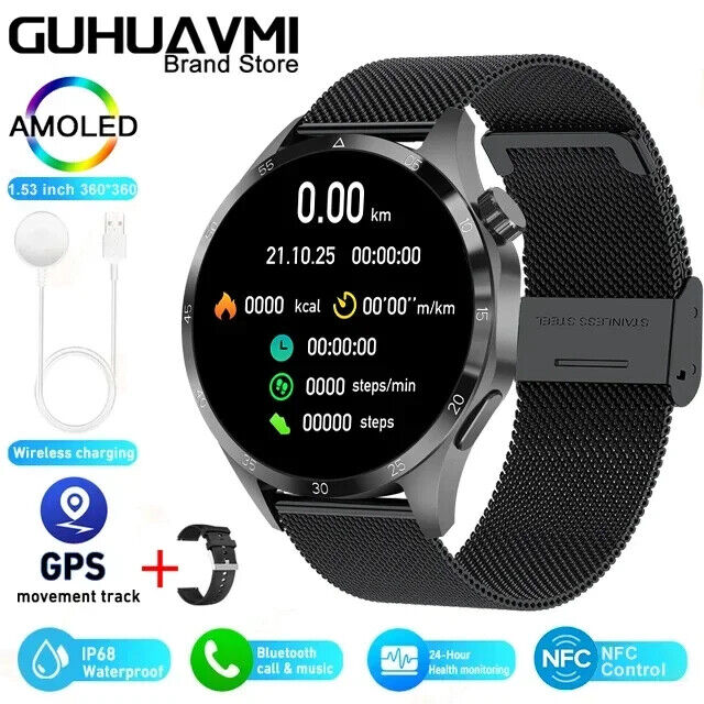 Fitness Tracker NFC Smartwatch Waterproof GPS Heart Rate Bluetooth Call Android