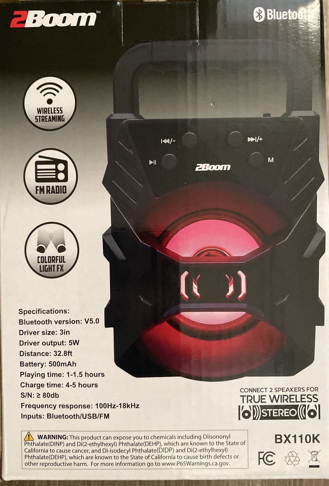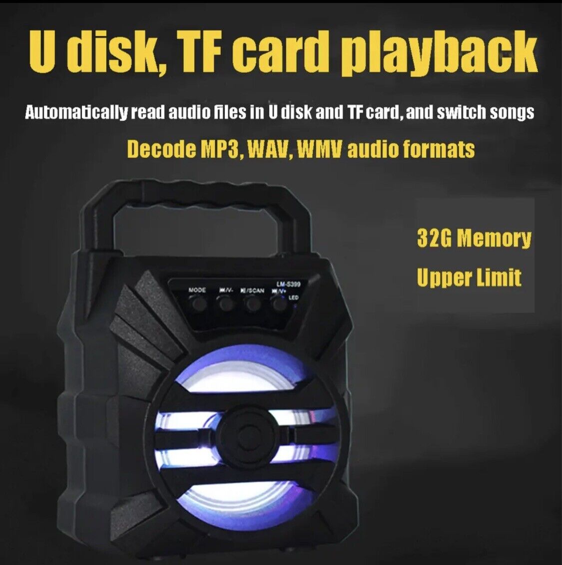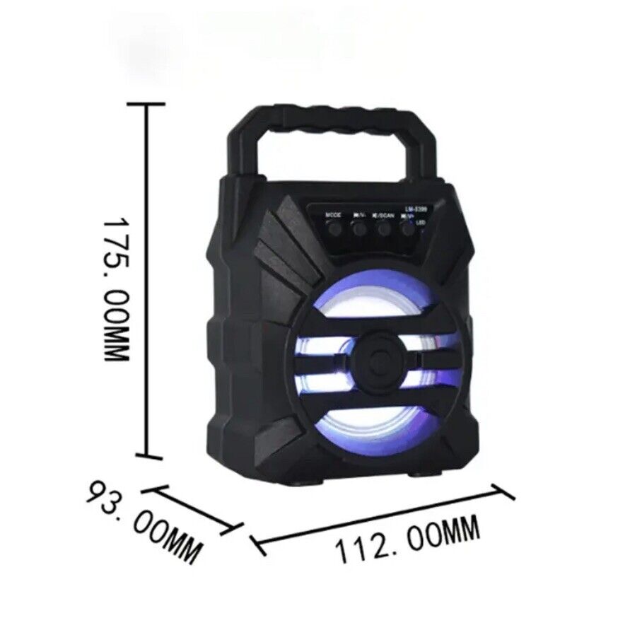 FM RADIO Extra Bass Wireless Speaker Portable Bluetooth Speaker Black - 3 in1 🎼. Specifications: Bluetooth version: V5.0 Driver size: 3in Driver output: 5W Distance: 32.8ft Battery: 500mAh Playing time: 1-1.5 hours Charge time: 4-5 hours SIN: ≥ 80db Frequency response: 100Hz-18kHz Inputs: Bluetooth/USB/FM