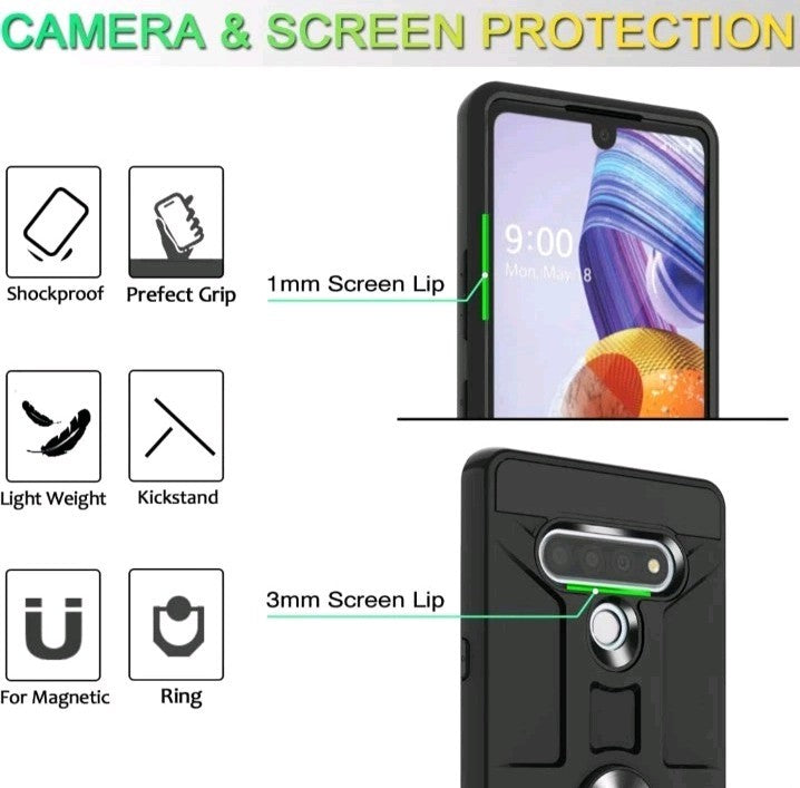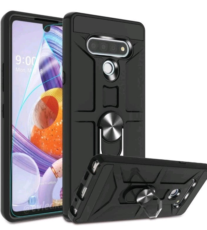 For LG Stylo 6 Case Phone Cover Kickstand Belt Clip + Tempered Glass Protector