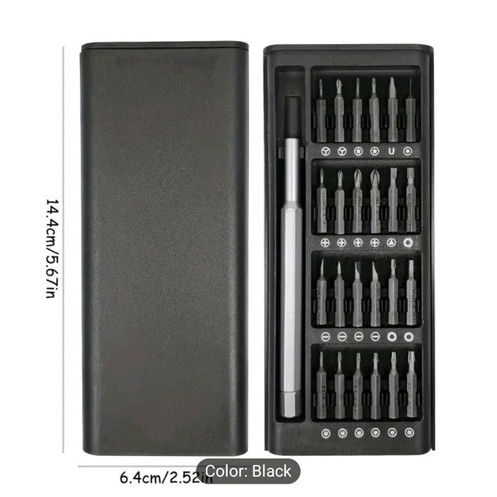 The product is a precision screwdriver set designed specifically for Macbook Air and Macbook Pro laptops. The set includes a 1.2mm pentalobe screwdriver with 30 pieces, made of high-quality alloy steel in a modern gray color. It features star size T6, a magnetic bit holder, additional bits, and an adjustable design for easy use. The brand is PRO, and it comes with a 1-month manufacturer warranty, making it a reliable tool for repairing and maintaining your Macbook devices.