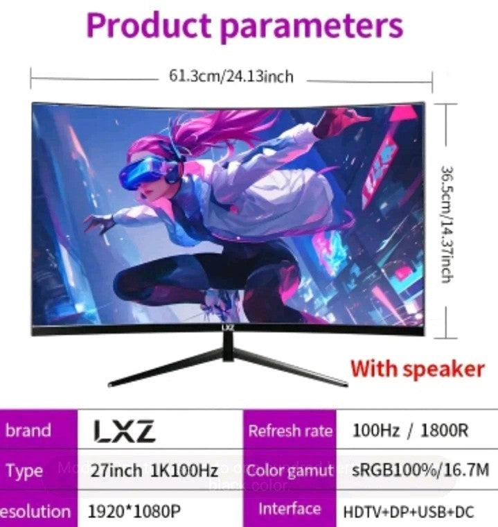 Frameless 27-Inch Curved Monitor - 1ms, 180Hz Refresh with Eye Protection. Condition is New. Shipped with USPS Ground Advantage.
