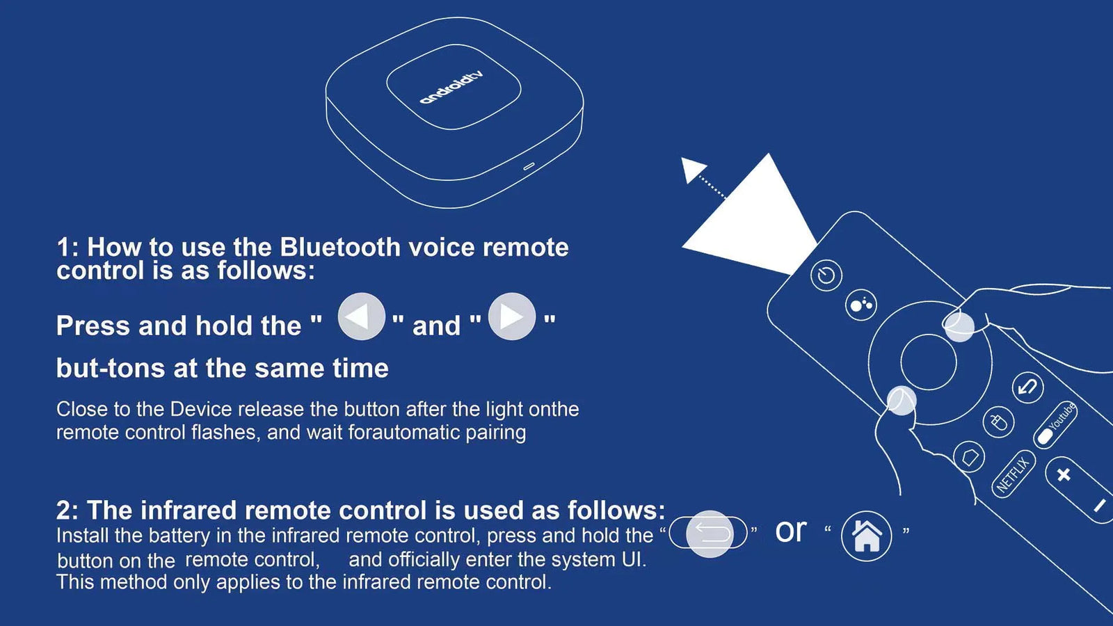 The infrared purple remote control does not require pairing, users can simply press the "HOME" button to return to the user interface.