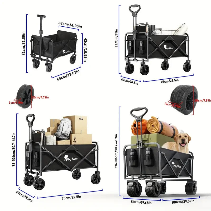 Heavy Duty 300lbs Collapsible Trailer All Terrain Utility Cart for Outdoor Use
