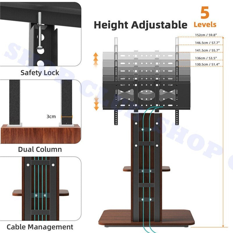 Heavy Duty TV Floor Stand 5-Levels Height Adjustable TV Mount Bracket Up To 65"