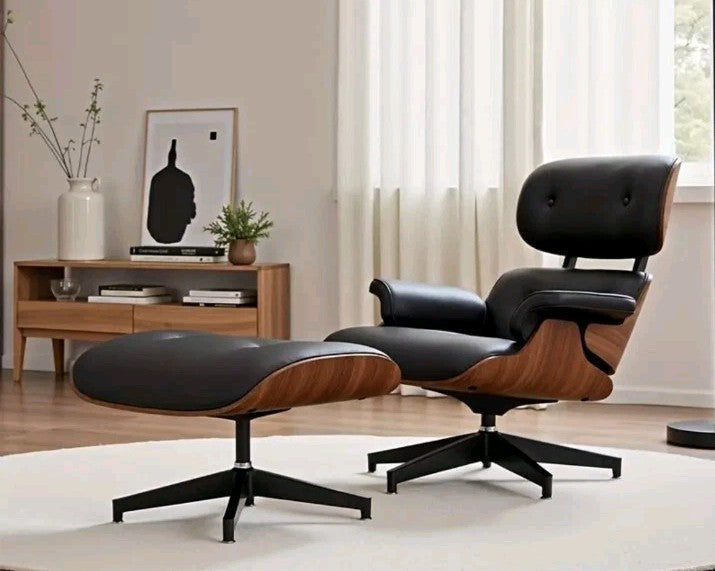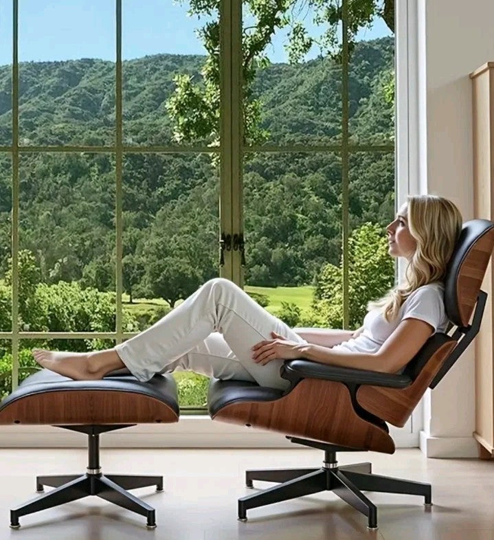 Leather Recliner Chair with Ottoman - Mid-Century Modern Accent Lounge Chair