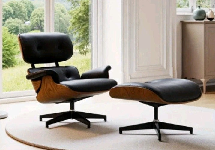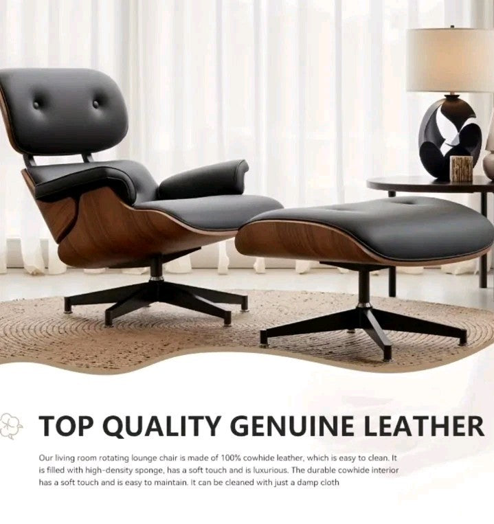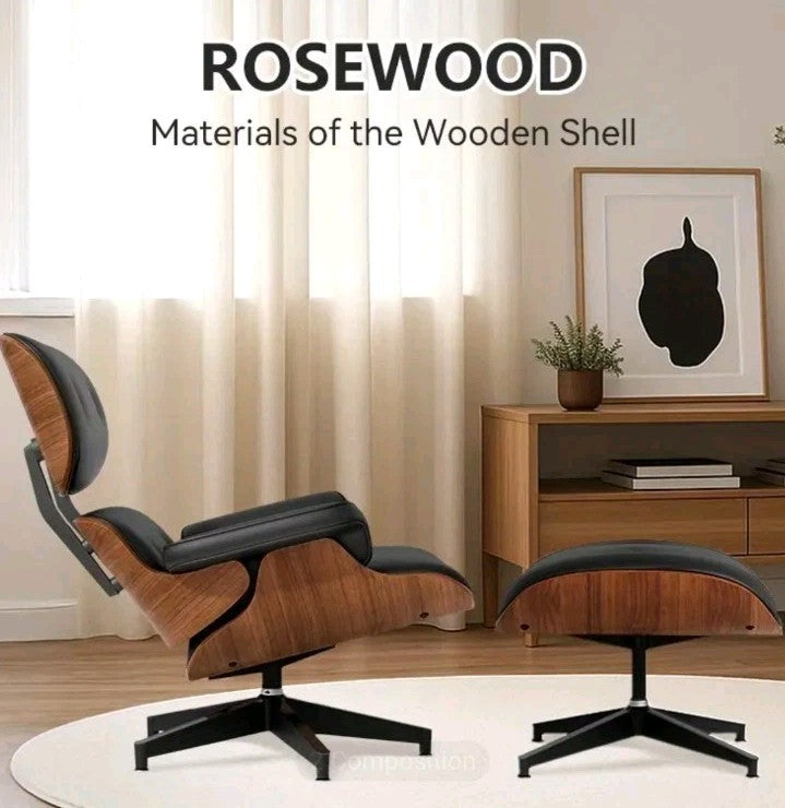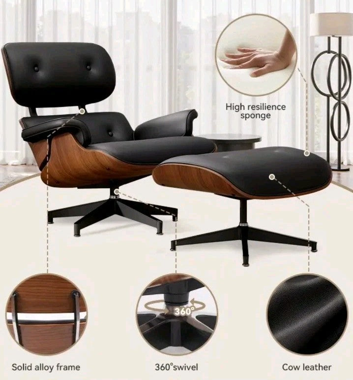 Leather Recliner Chair with Ottoman - Mid-Century Modern Accent Lounge Chair. Condition is New. Shipped with USPS Priority Mail.