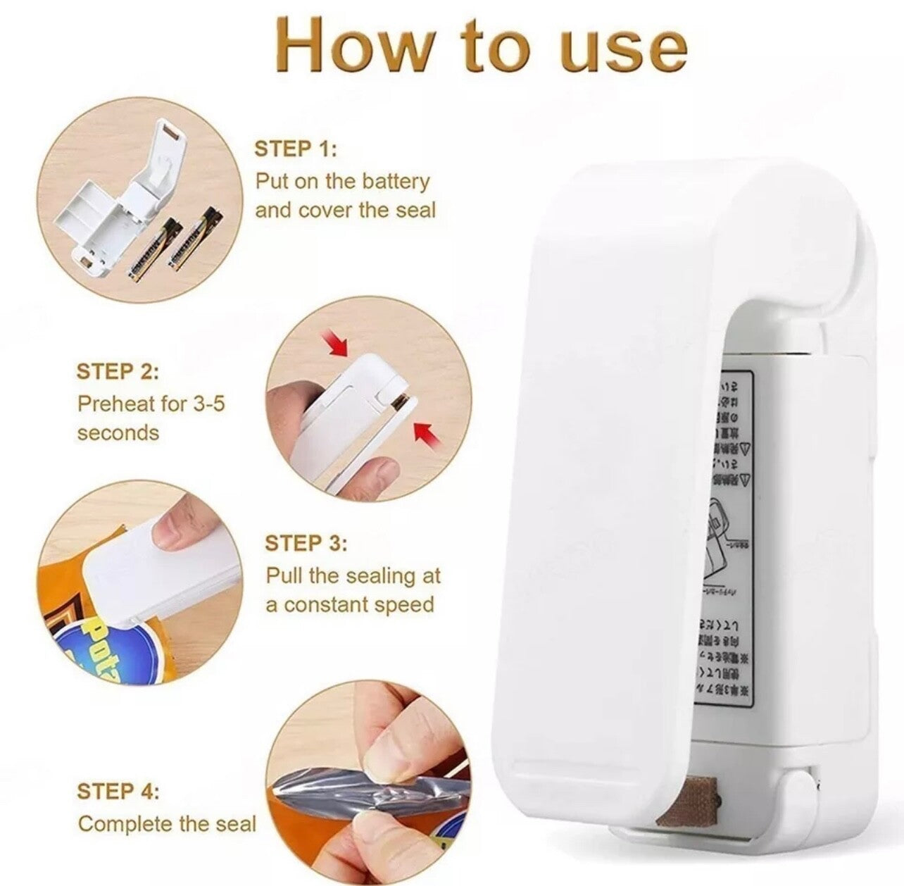 Mini White Bag Sealer Machine for Snacks and Ziploc Bags.