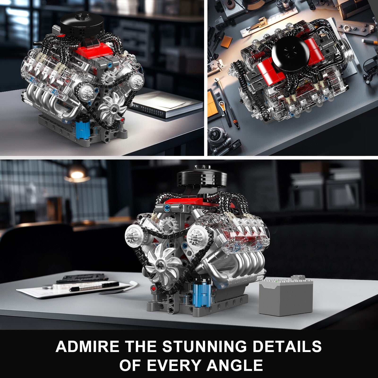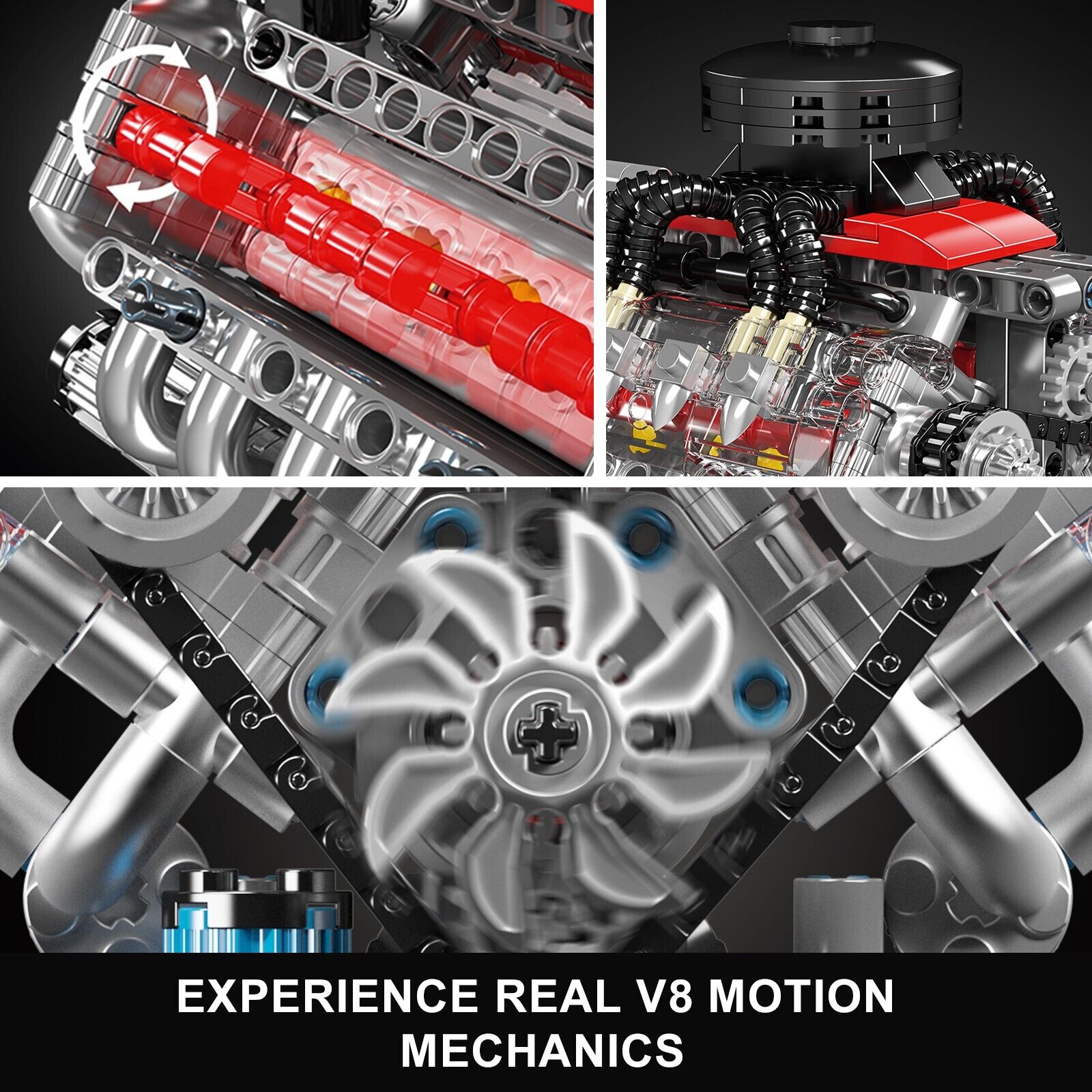Mould King 10171 V8 Engine Motor Engineering Model Building Block Toy Collection